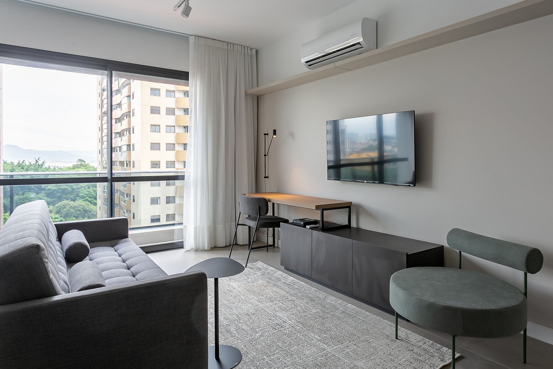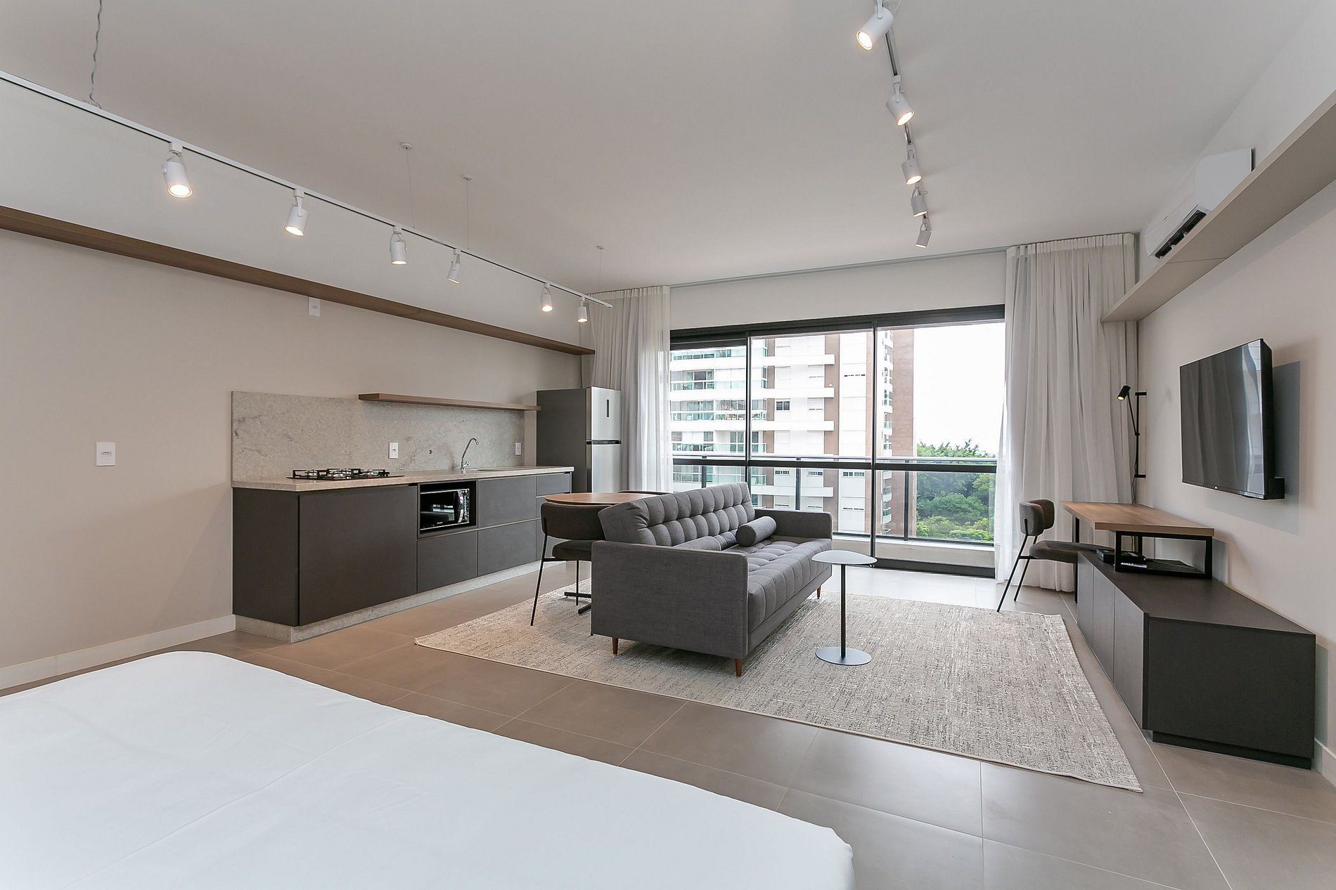 Temos diversas unidades de estúdios neste prédio, sendo todos projetados para você ter uma ótima estadia — o padrão dos movéis e facilidades são as mesma, entretanto a vista, layout e design PODEM VARIAR.