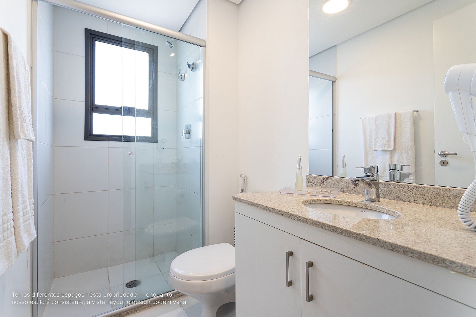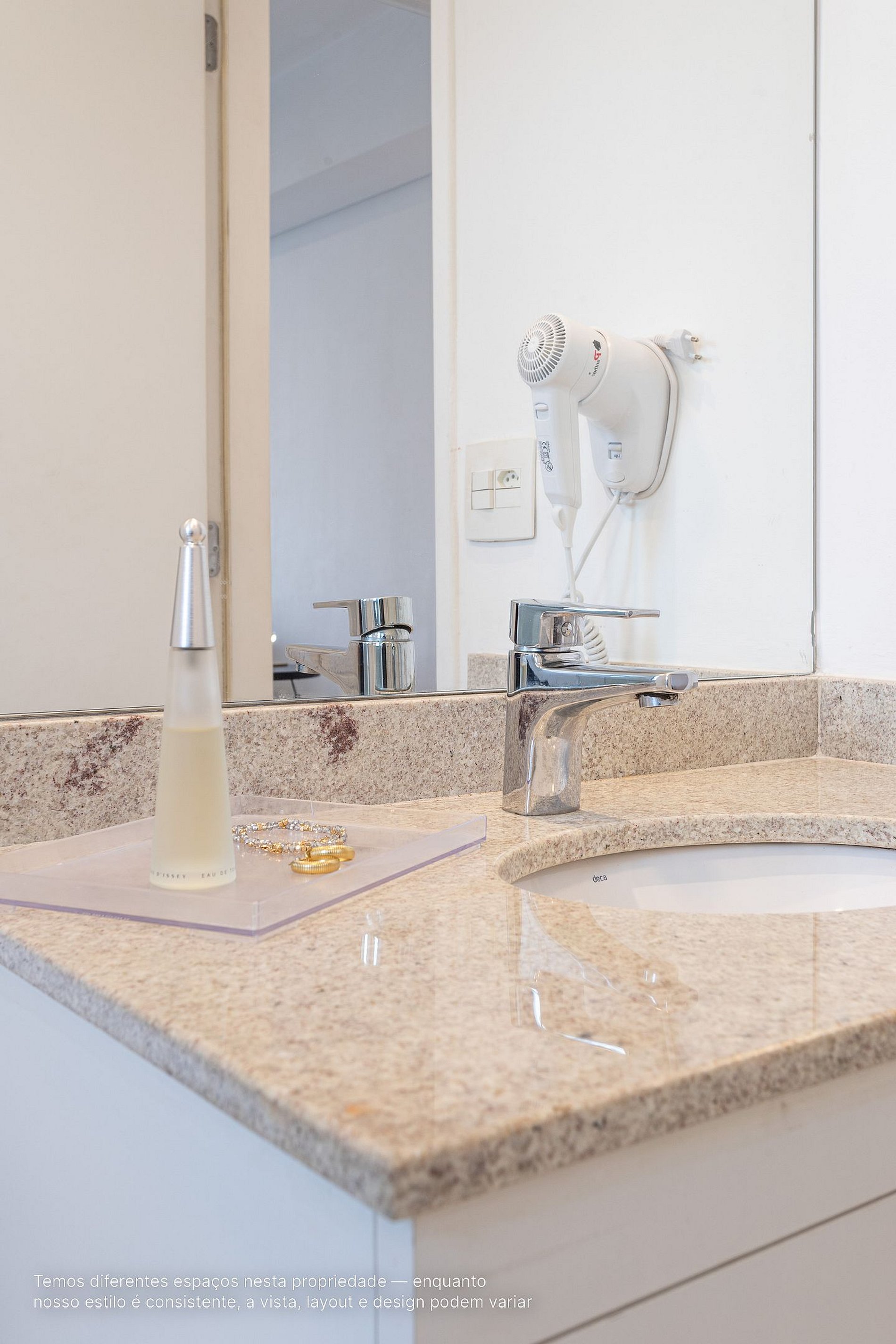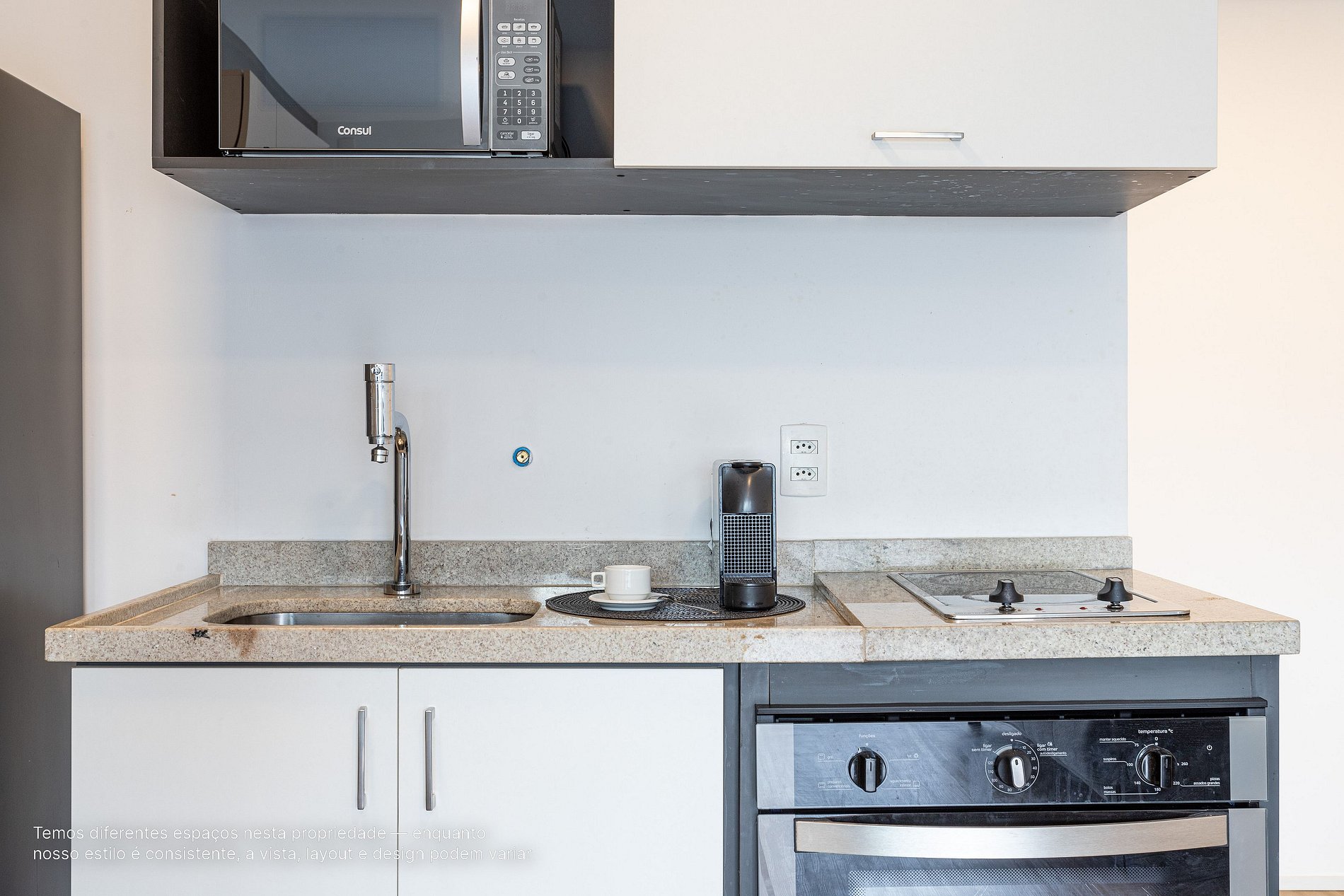 - A decoração e as amenidades dos apartamentos podem ter variações como cafeteira (pó ou cápsula), ferro de passar x steamer, fogão x cooktop (com ou sem forno).