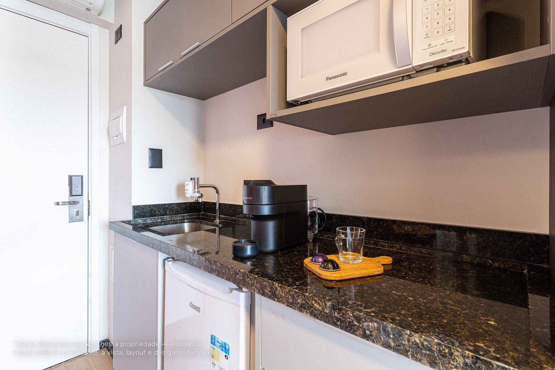 *A decoração e as amenidades dos apartamentos podem ter variações como cafeteira (pó x cápsula), ferro de passar x steamer, fogão x cooktop (com ou sem forno).