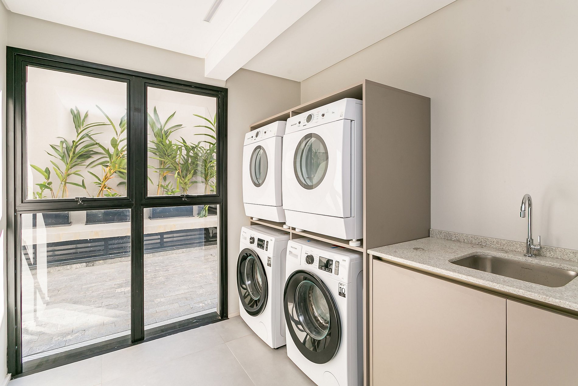 Lavanderia (Andar térreo, 7h às 23h, uso compartilhado, necessário reservar com antecedência, serviço pago, não inclui produtos)