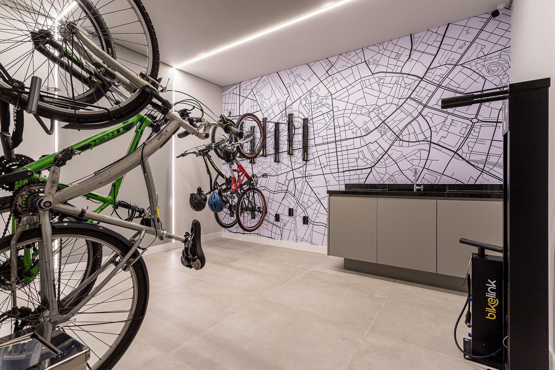 - Bicicletário (Andar térreo, possui ganchos na parede para guardar mas não possui cadeado)