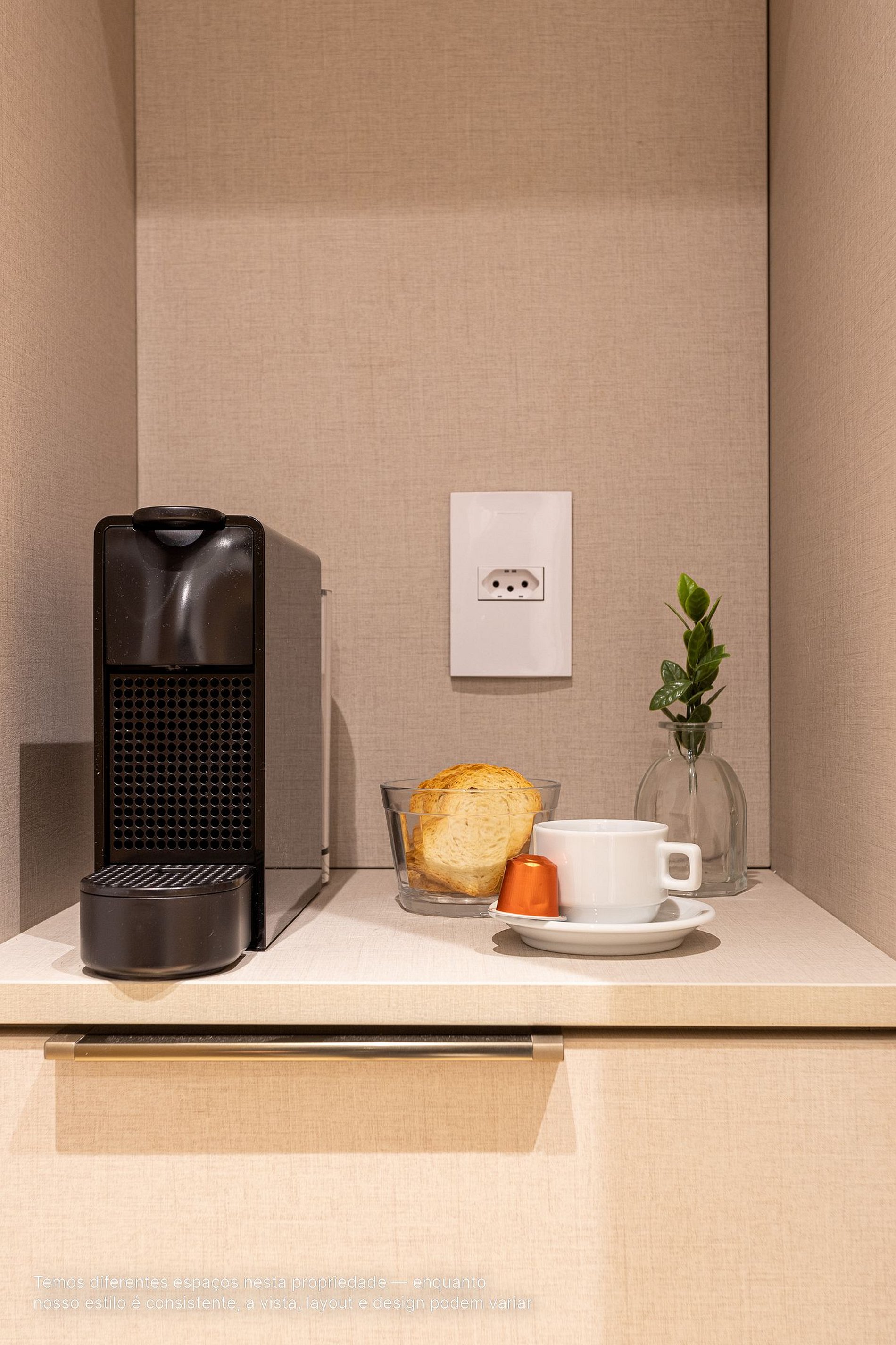 *A decoração e as amenidades dos apartamentos podem ter variações como cafeteira (pó x cápsula), ferro de passar x steamer, fogão x cooktop (com ou sem forno).