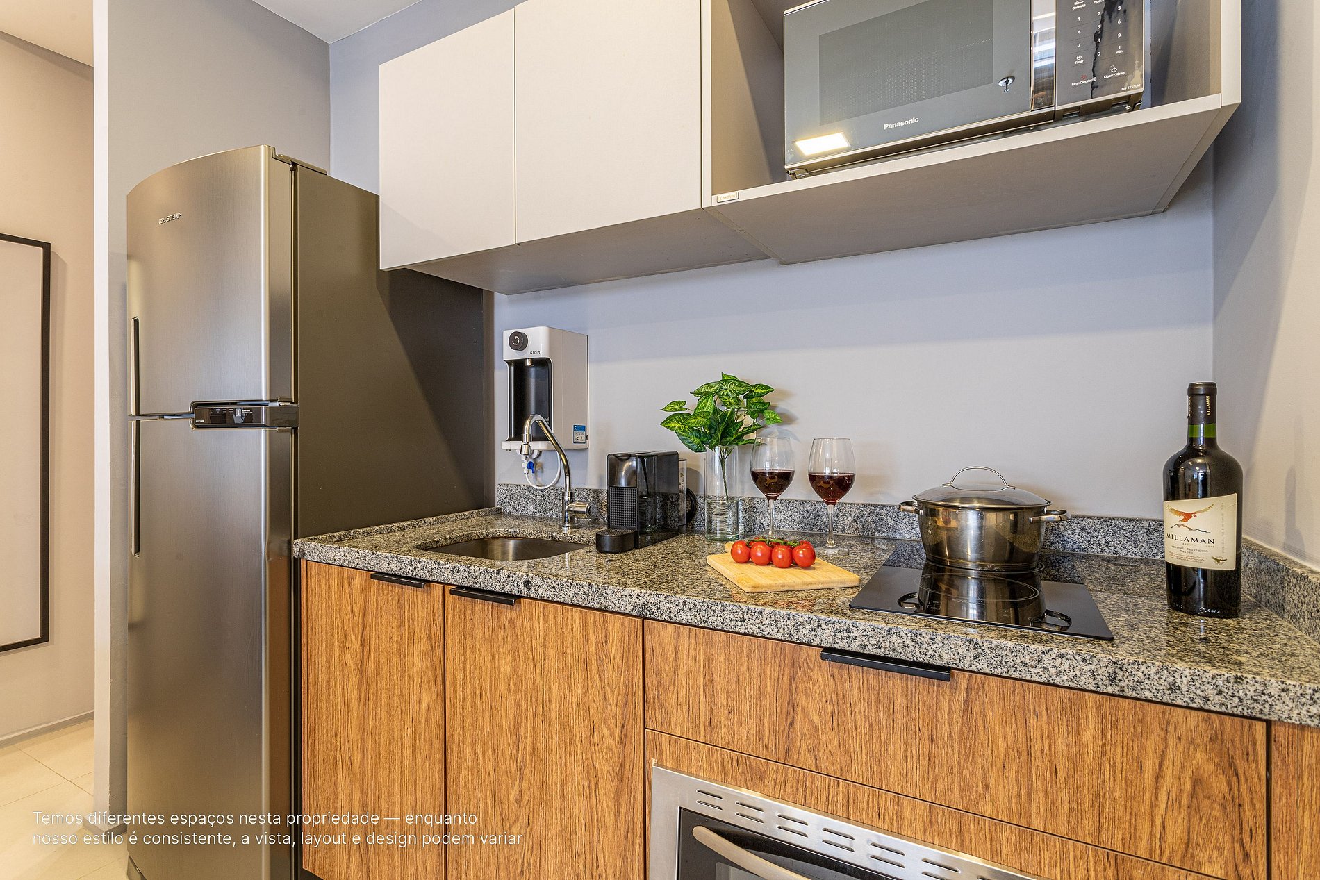*A decoração e as amenidades dos apartamentos podem ter variações como cafeteira (pó x cápsula), ferro de passar x steamer, fogão x cooktop (com ou sem forno).