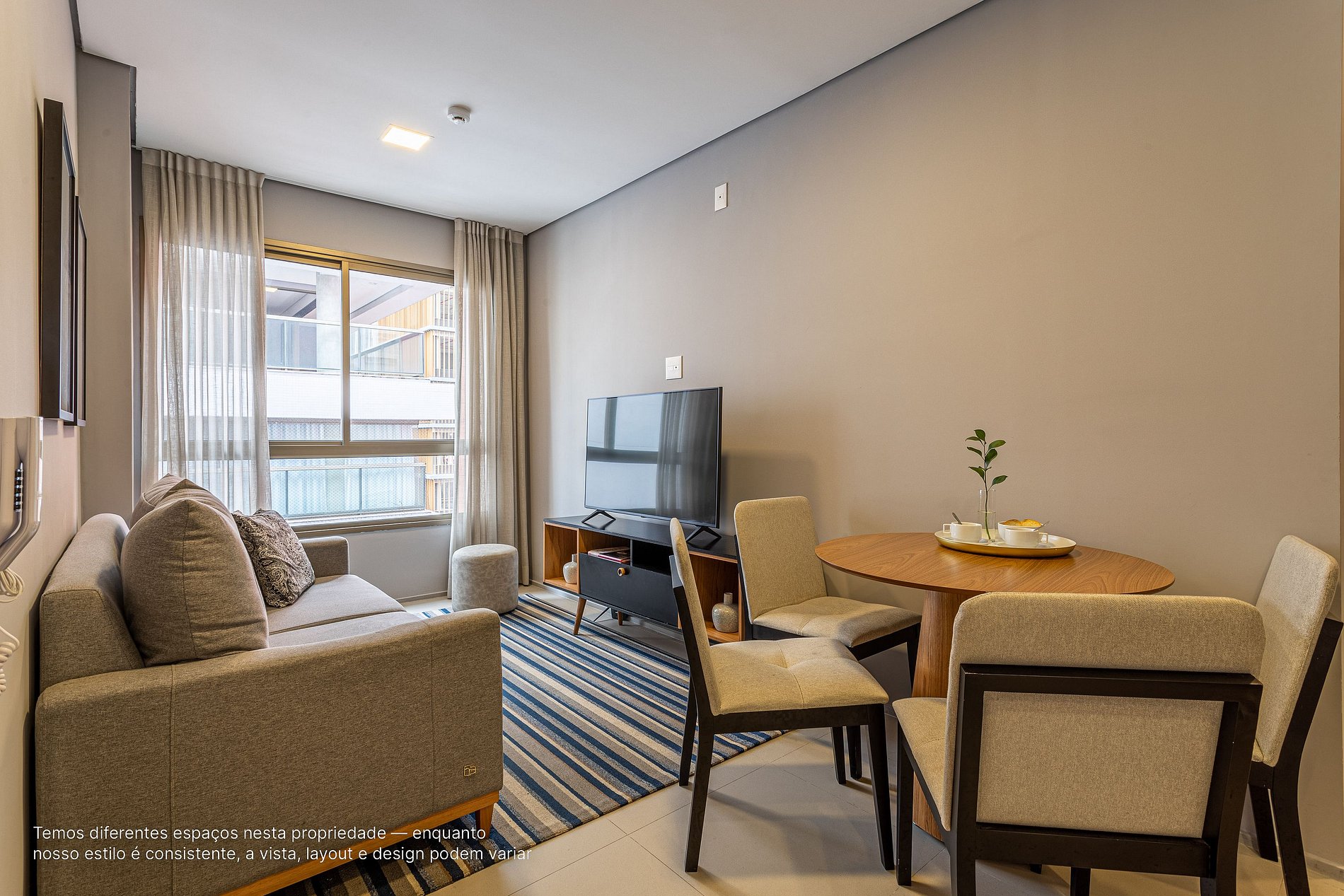 *A decoração e as amenidades dos apartamentos podem ter variações como cafeteira (pó x cápsula), ferro de passar x steamer, fogão x cooktop (com ou sem forno).