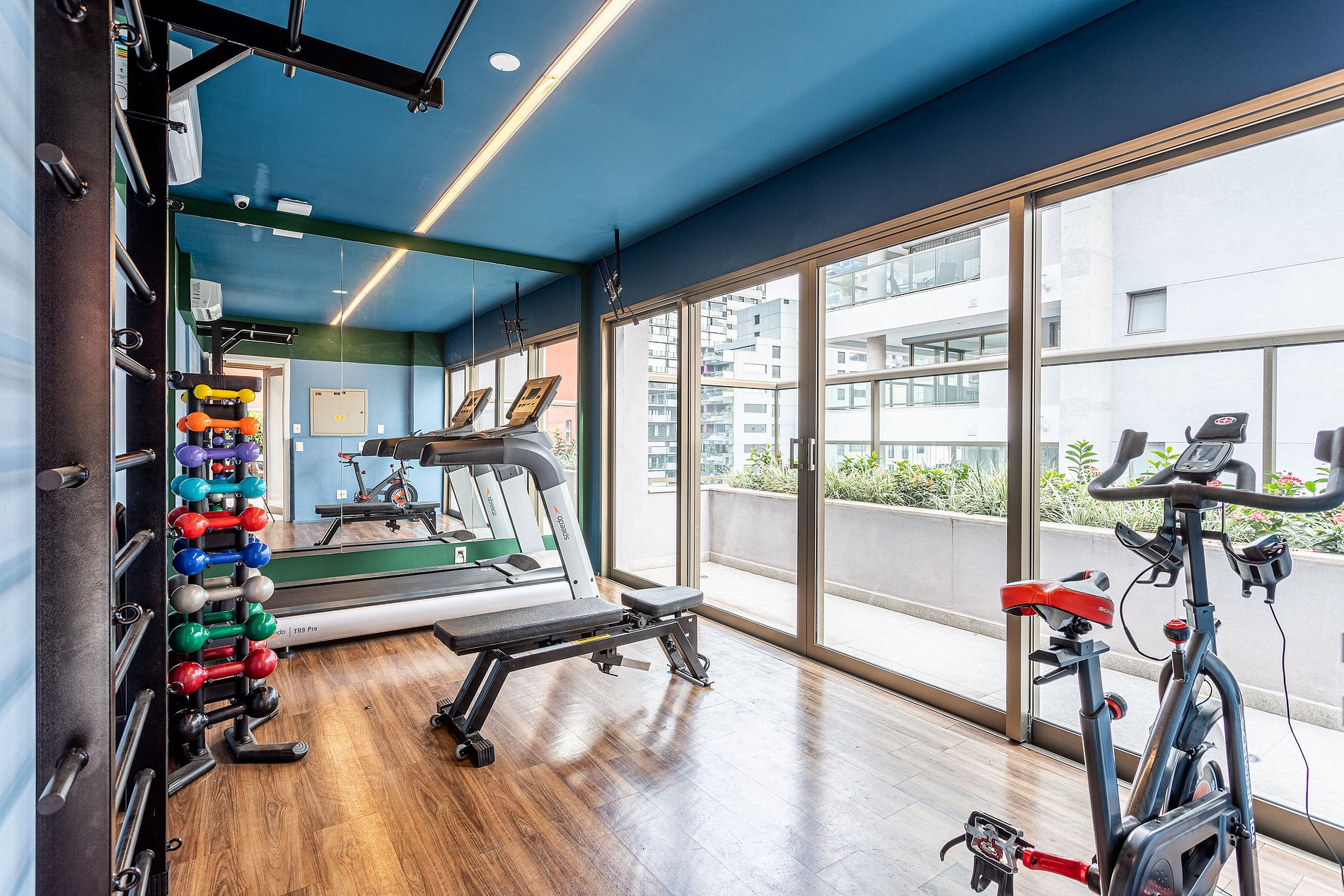 - Academia (8. andar, uso livre das 06h às 22h, equipada com esteira, bicicleta ergométrica, espaldar para alongamento e banco regulável)