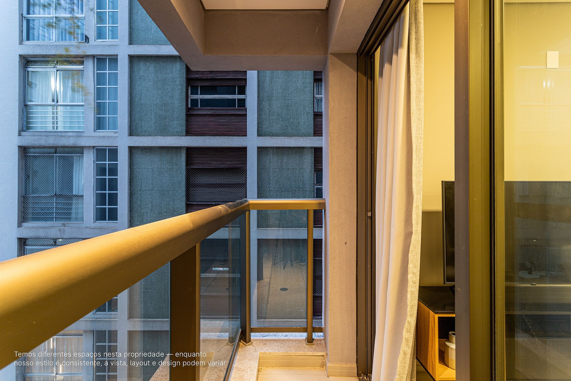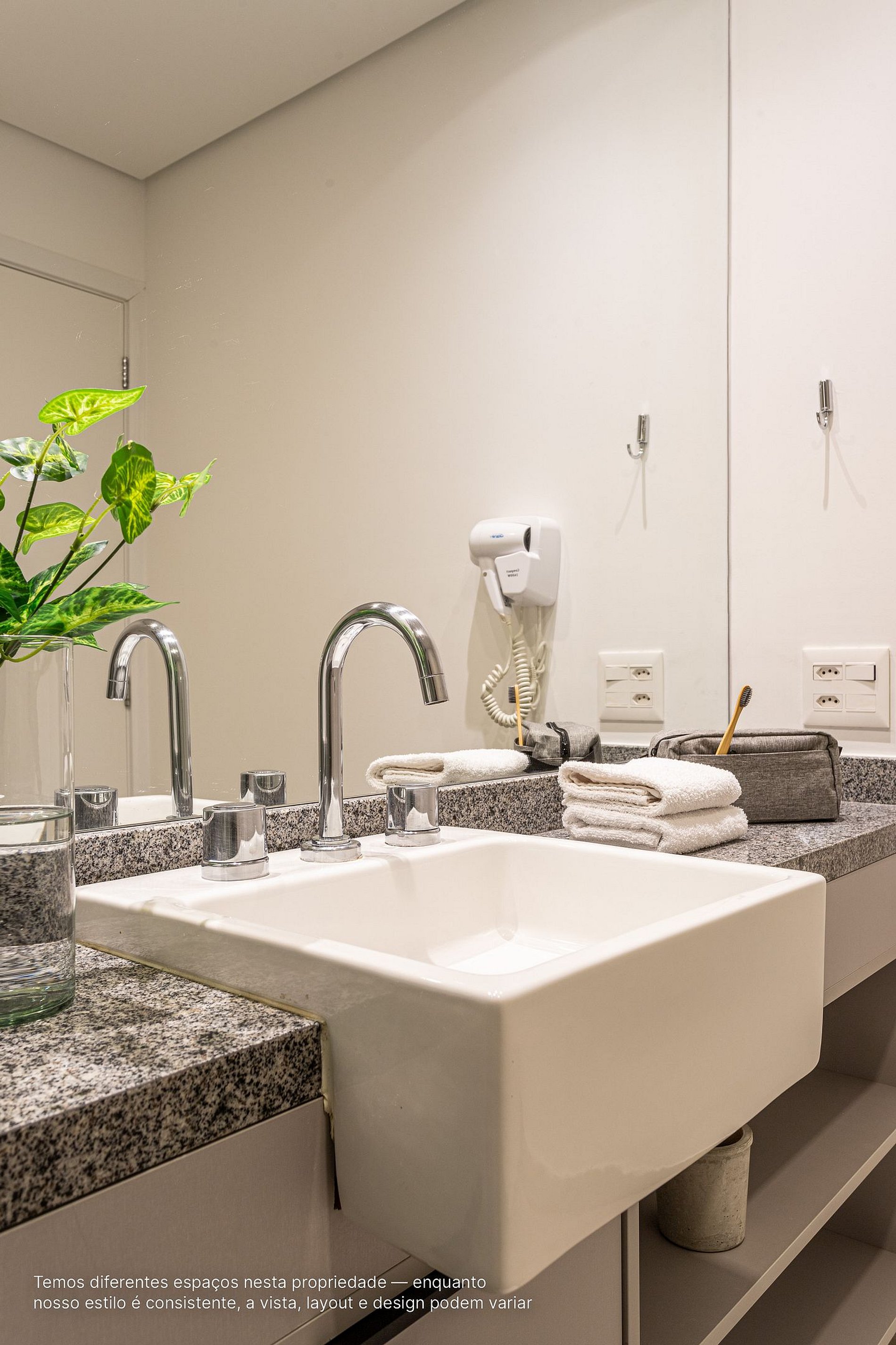 - A decoração e as amenidades dos apartamentos podem ter variações como (ferro de passar x steamer, fogão x cooktop (com ou sem forno).