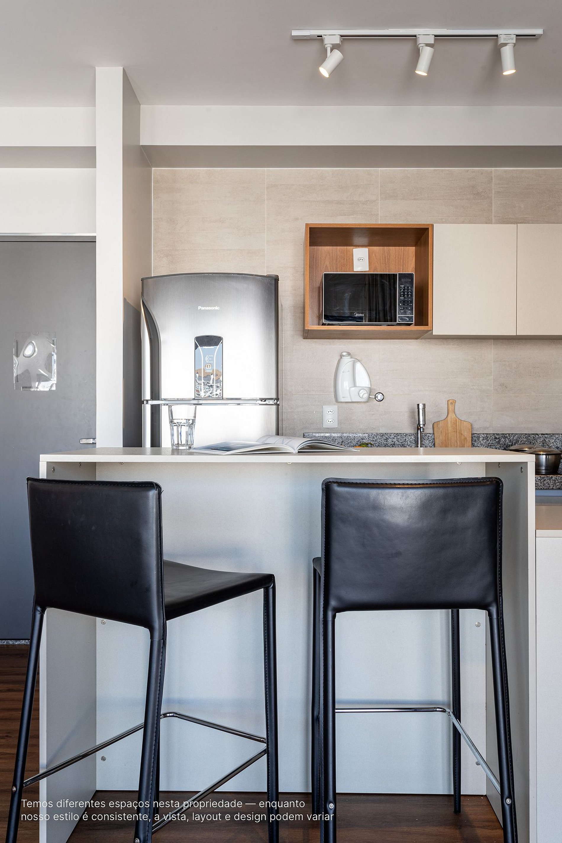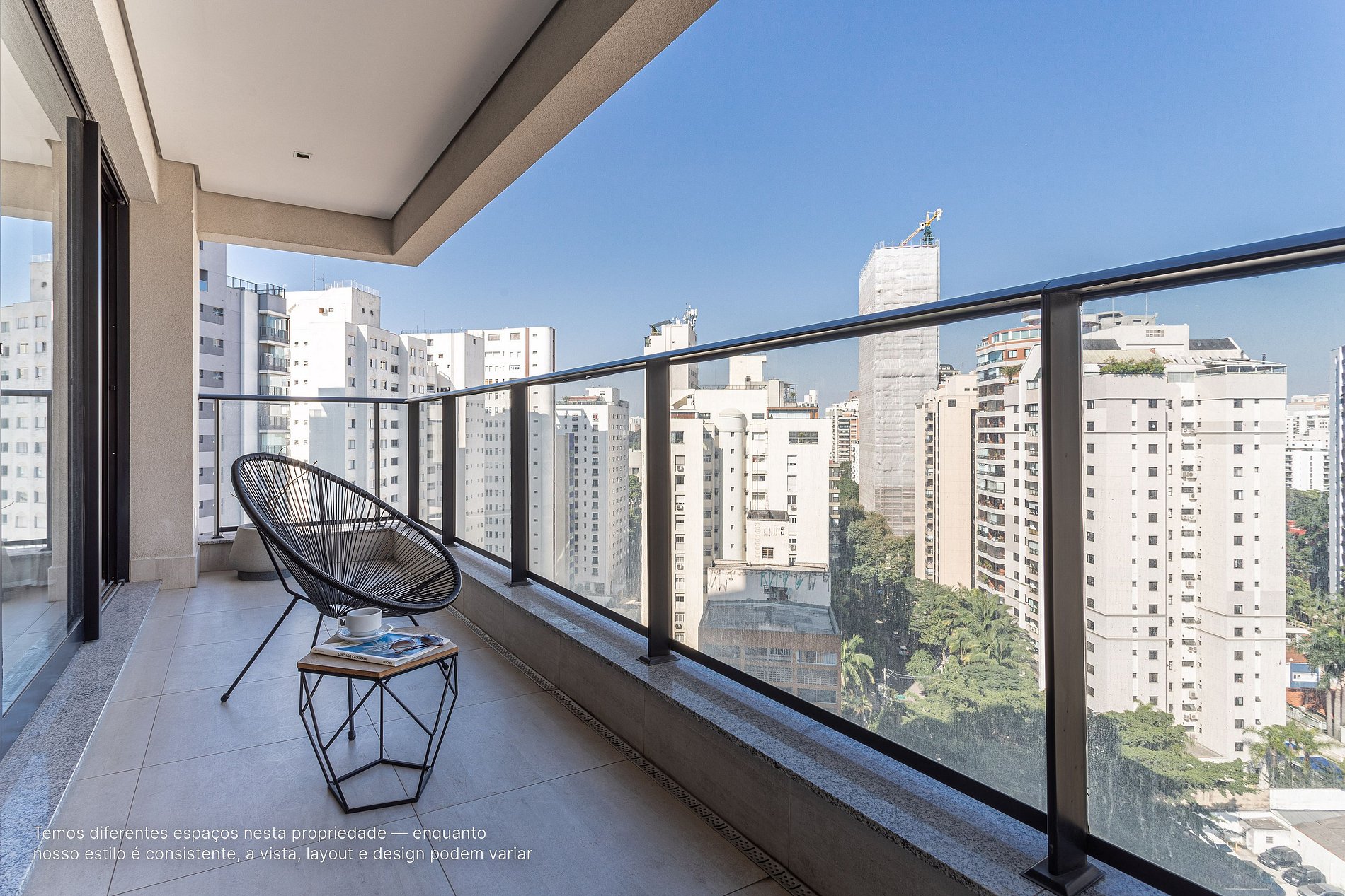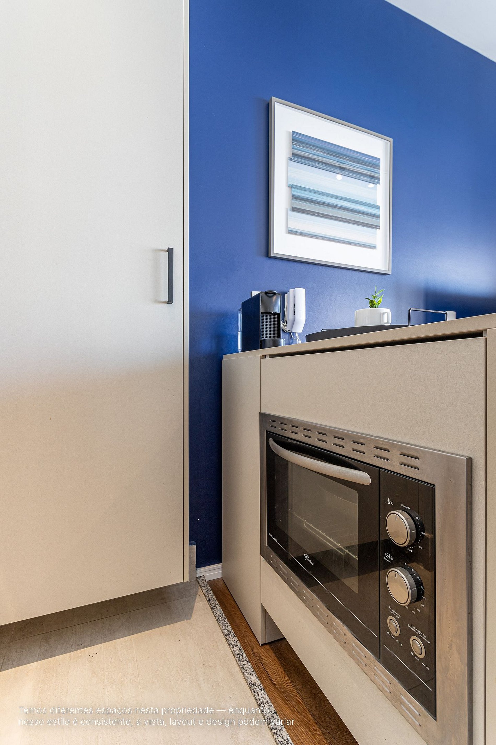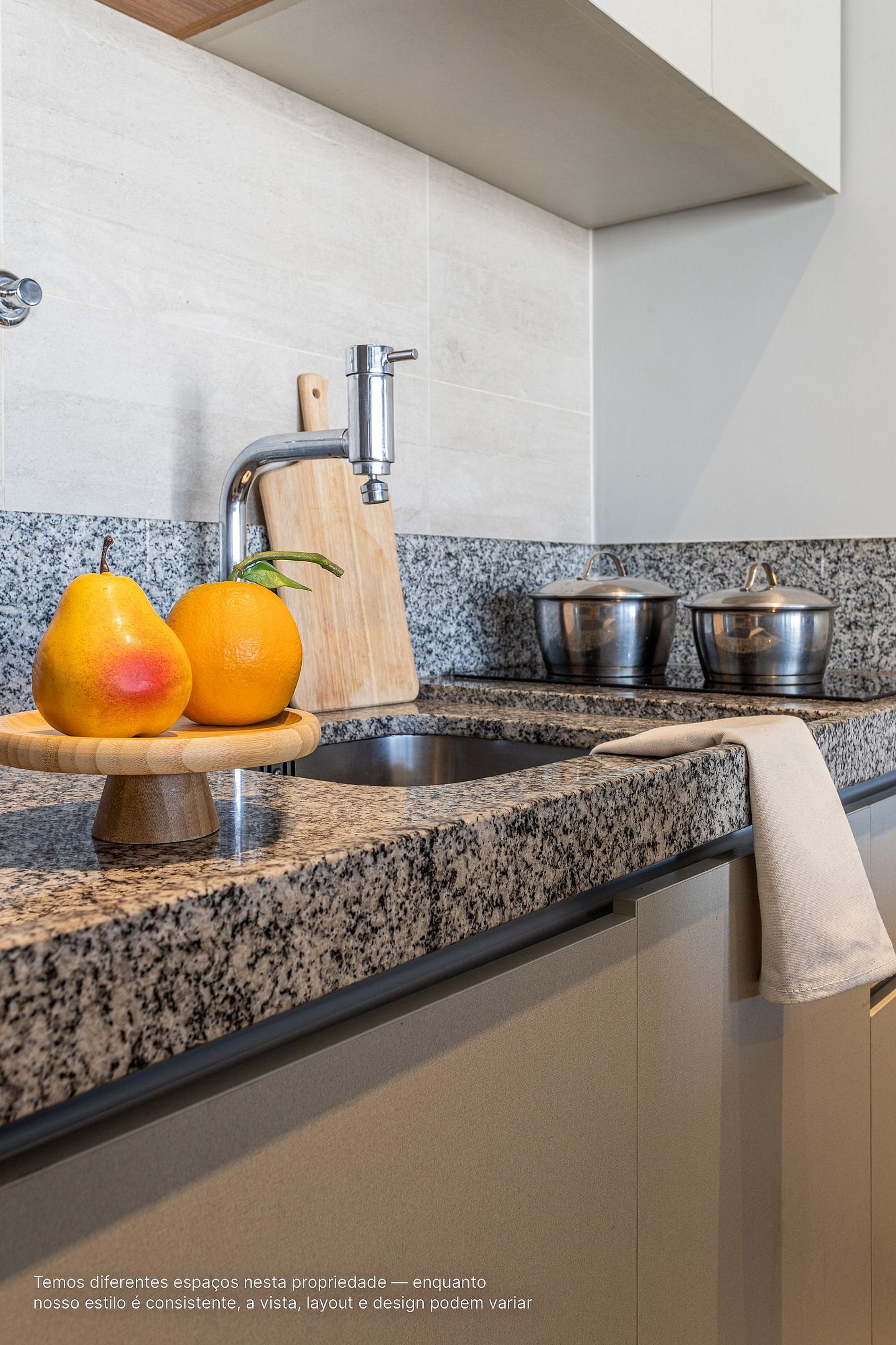 - A decoração e as amenidades dos apartamentos podem ter variações como cafeteira (pó ou cápsula), ferro de passar x steamer, fogão x cooktop (com ou sem forno).