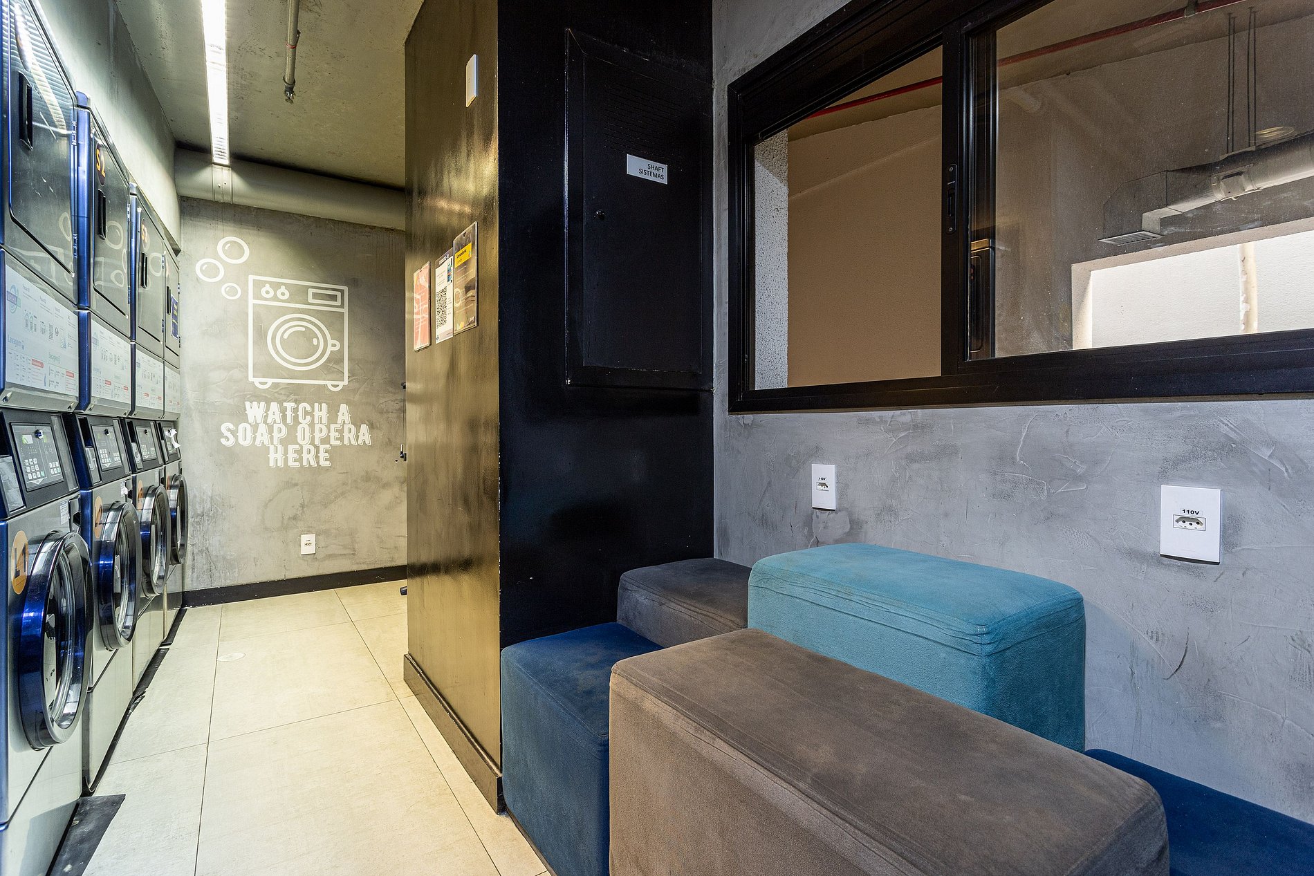 Lavanderia 24h Térreo, serviço pago, mediante disponibilidade, não inclui produtos, necessário levar sabão líquido)