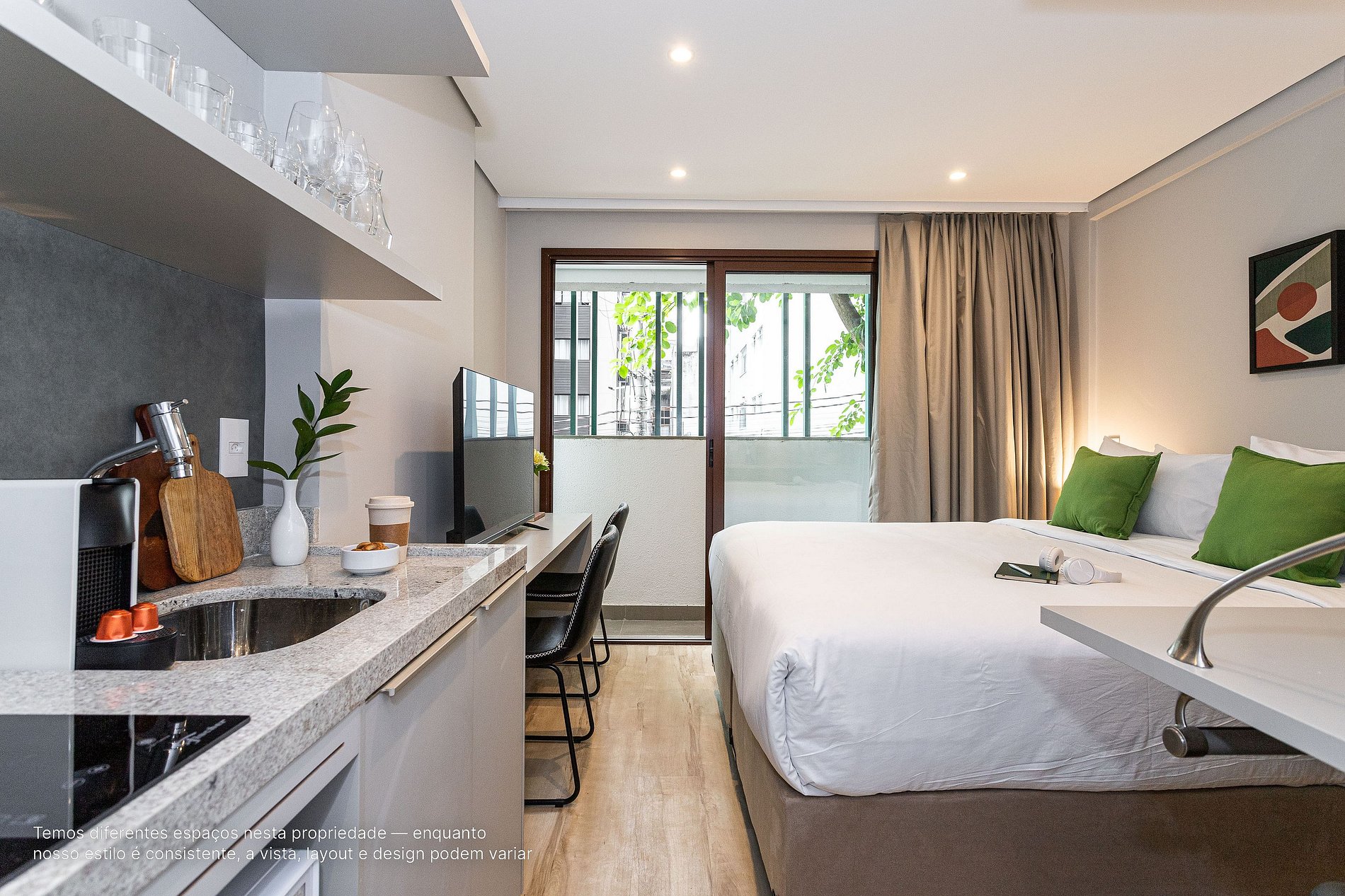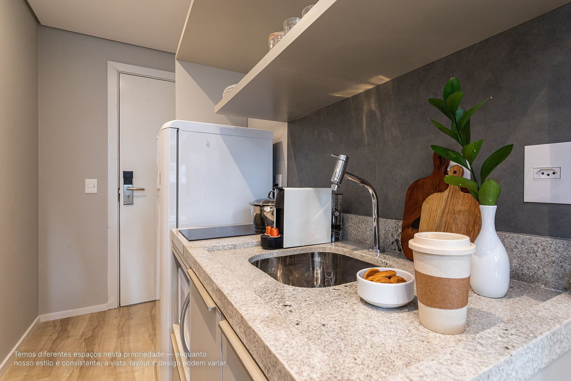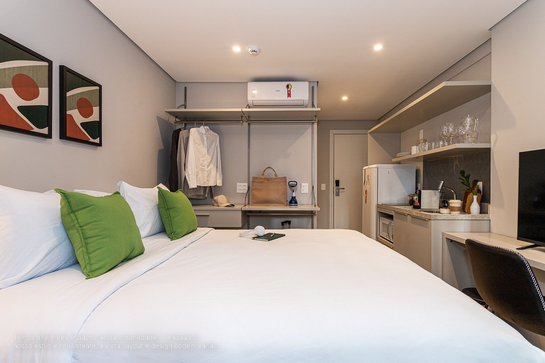 *A decoração e as amenidades dos apartamentos podem ter variações como cafeteira (pó x cápsula), ferro de passar x steamer, fogão x cooktop (com ou sem forno).
