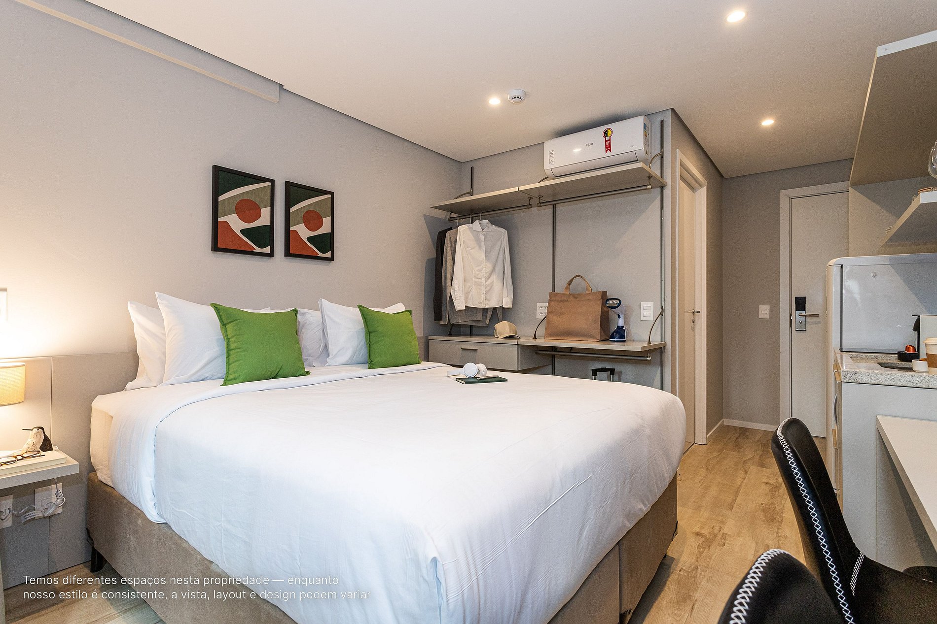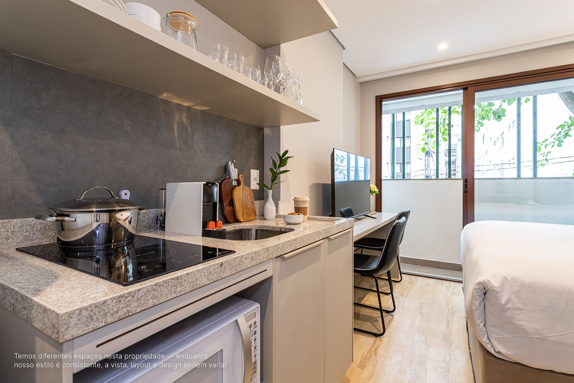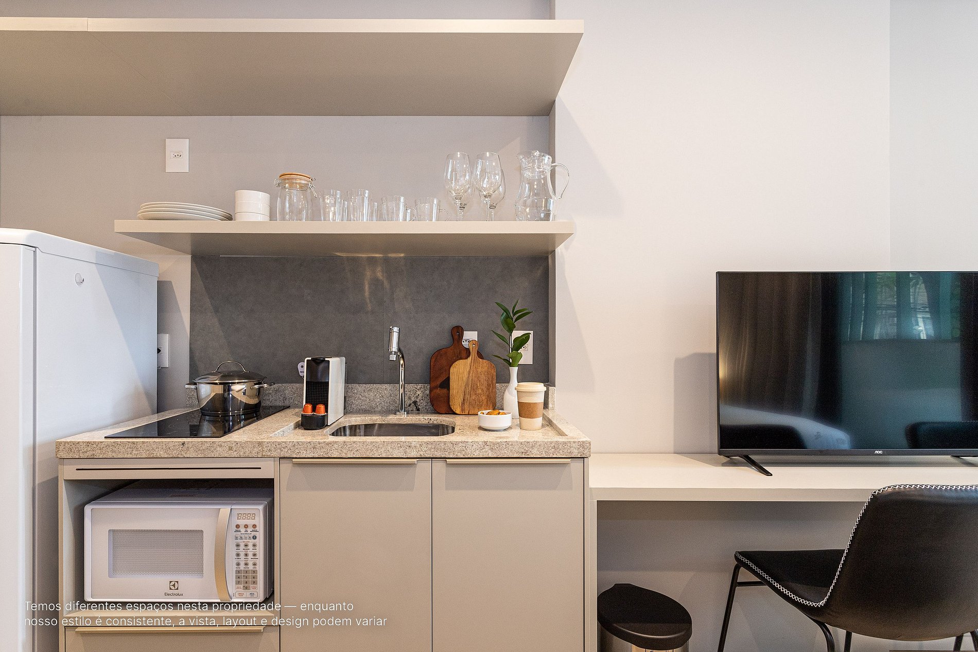 *A decoração e as amenidades dos apartamentos podem ter variações como cafeteira (pó x cápsula), ferro de passar x steamer, fogão x cooktop (com ou sem forno).