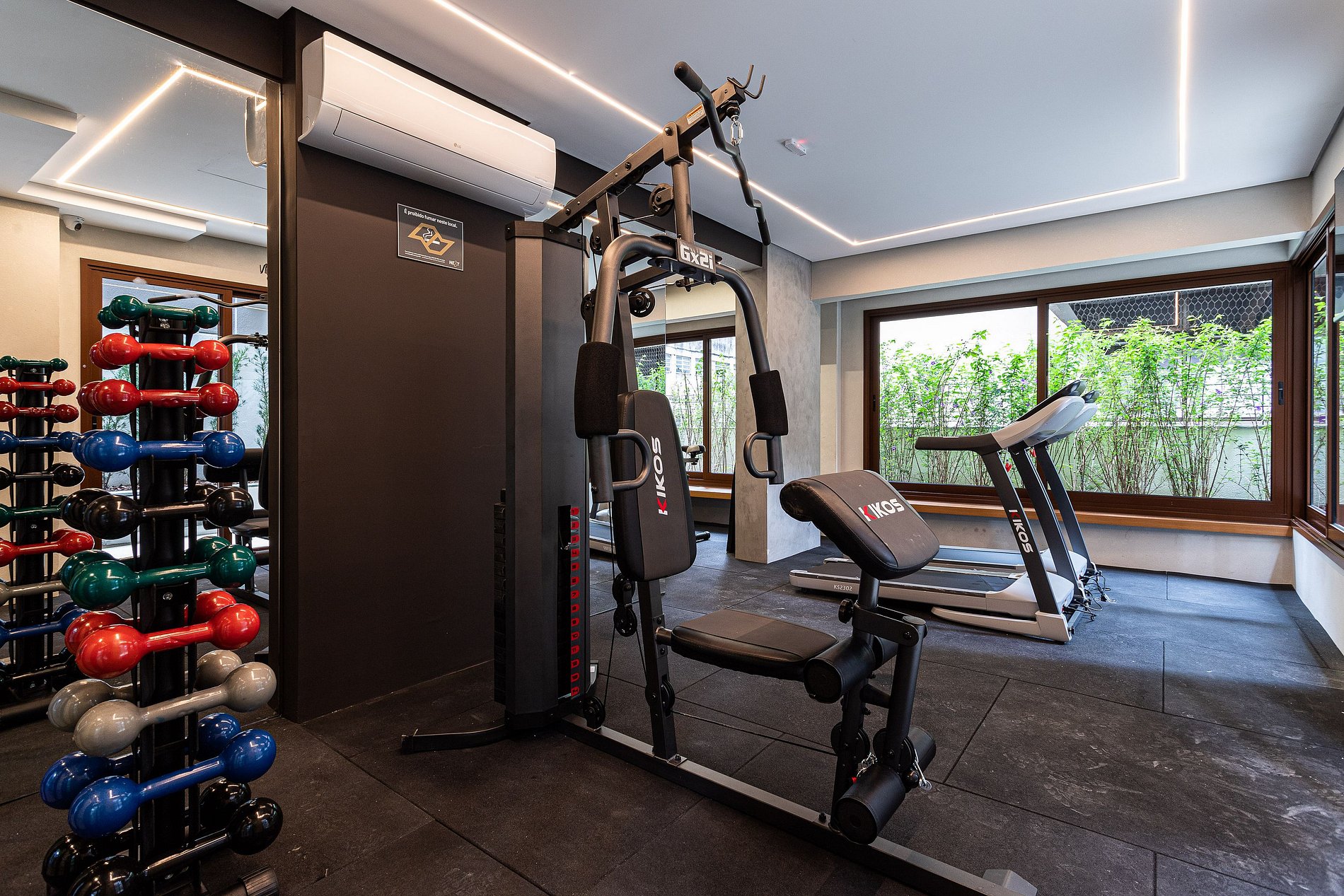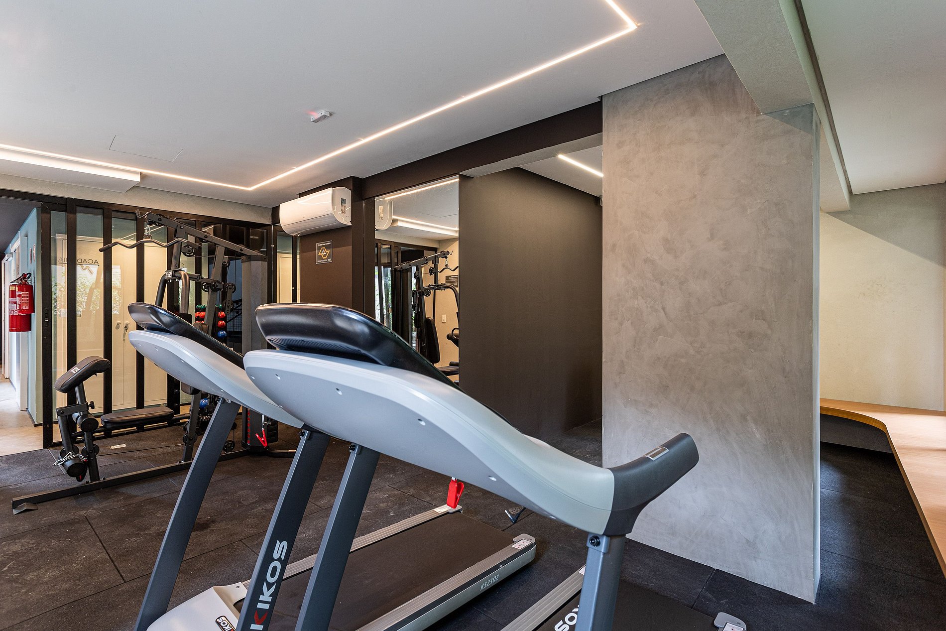 - Academia (2. Andar, 05h as 23h, equipada com esteiras, banco e halteres).