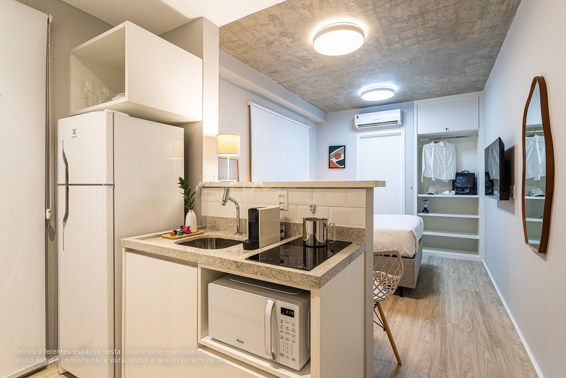 *A decoração e as amenidades dos apartamentos podem ter variações como cafeteira (pó x cápsula), ferro de passar x steamer, fogão x cooktop (com ou sem forno).