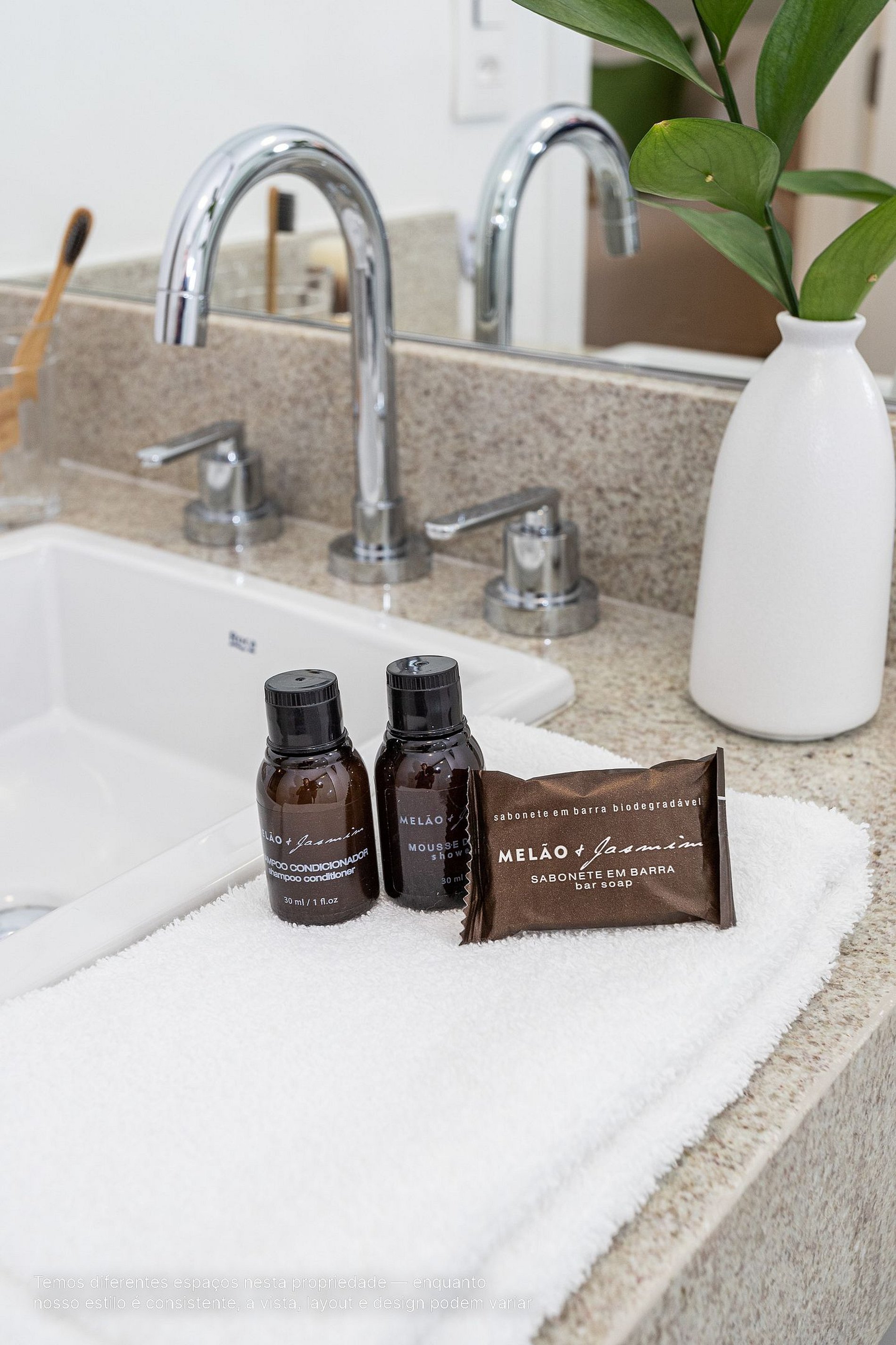 - Amenidades essenciais (cortesia na chegada, sem reposição durante a estadia).