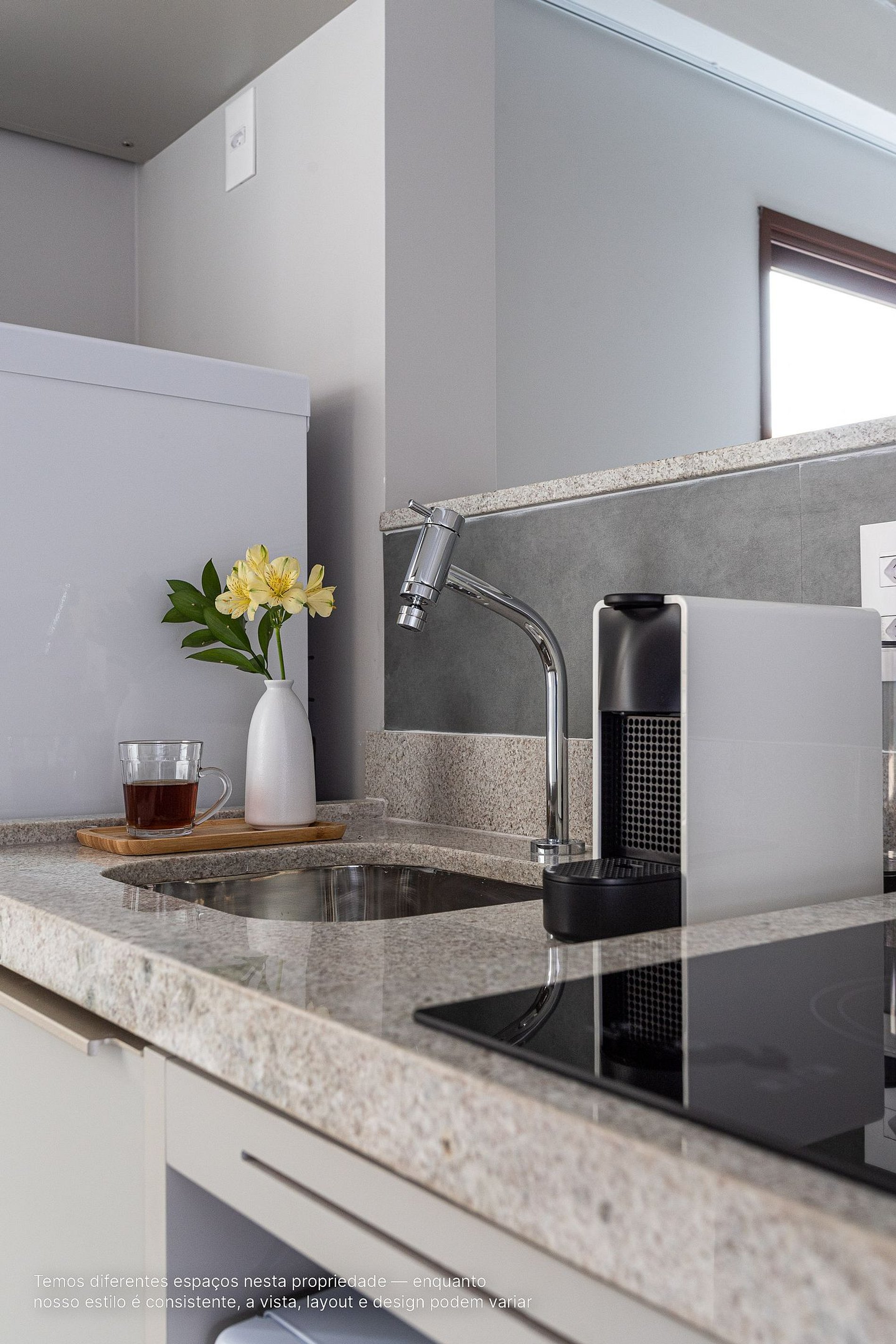 - A decoração e as amenidades dos apartamentos podem ter variações como cafeteira (pó x cápsula), ferro de passar x steamer, fogão x cooktop (com ou sem forno).