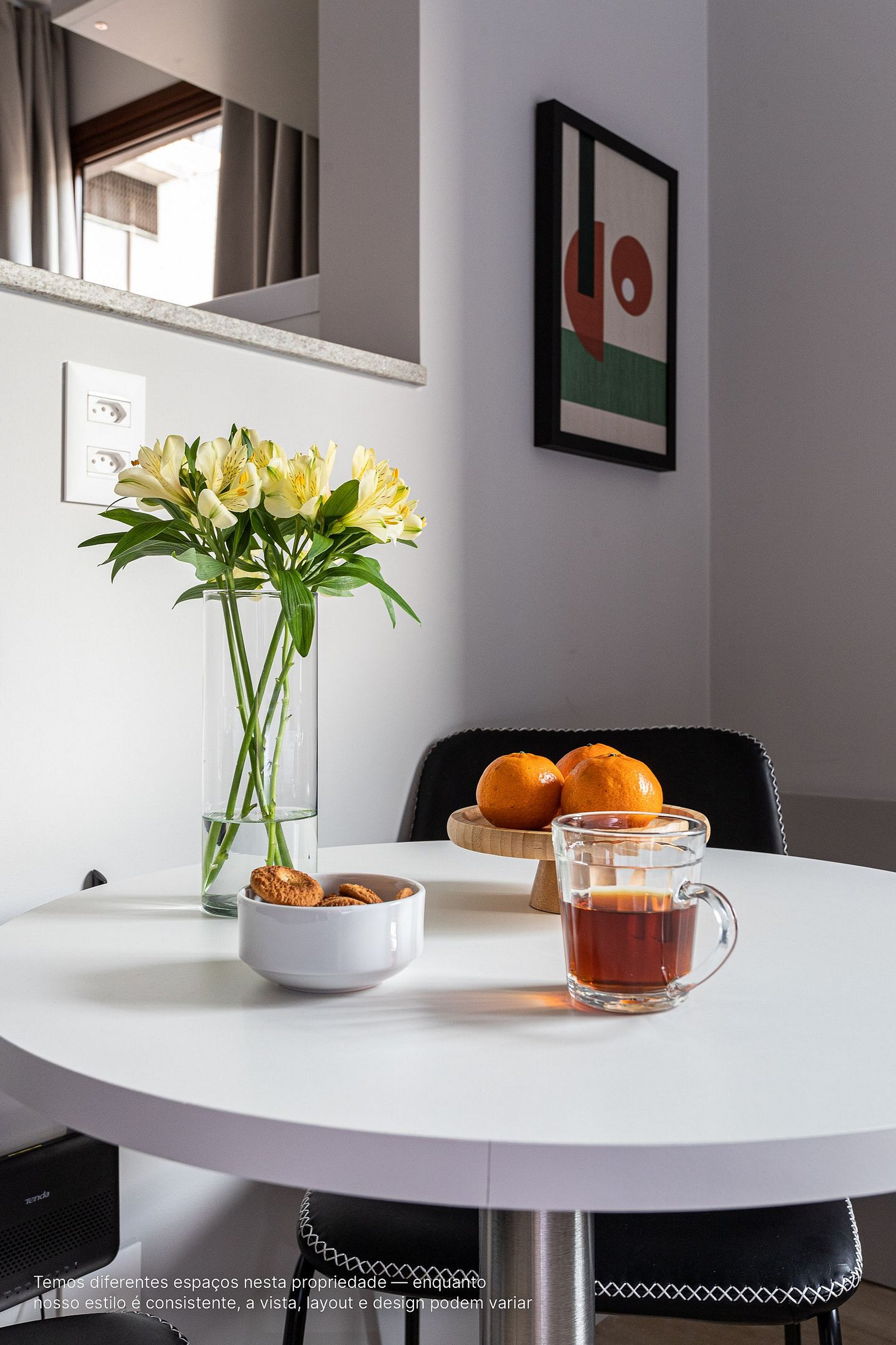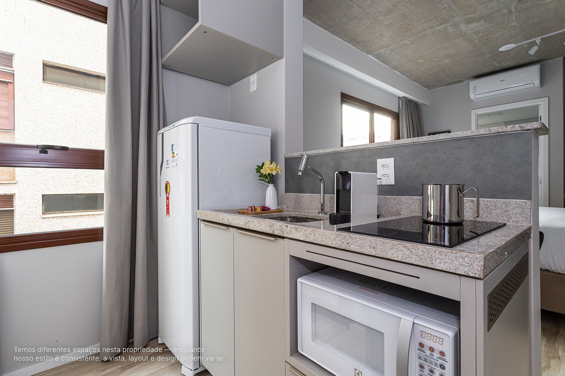 - A decoração e as amenidades dos apartamentos podem ter variações como cafeteira (pó x cápsula), ferro de passar x steamer, fogão x cooktop (com ou sem forno).