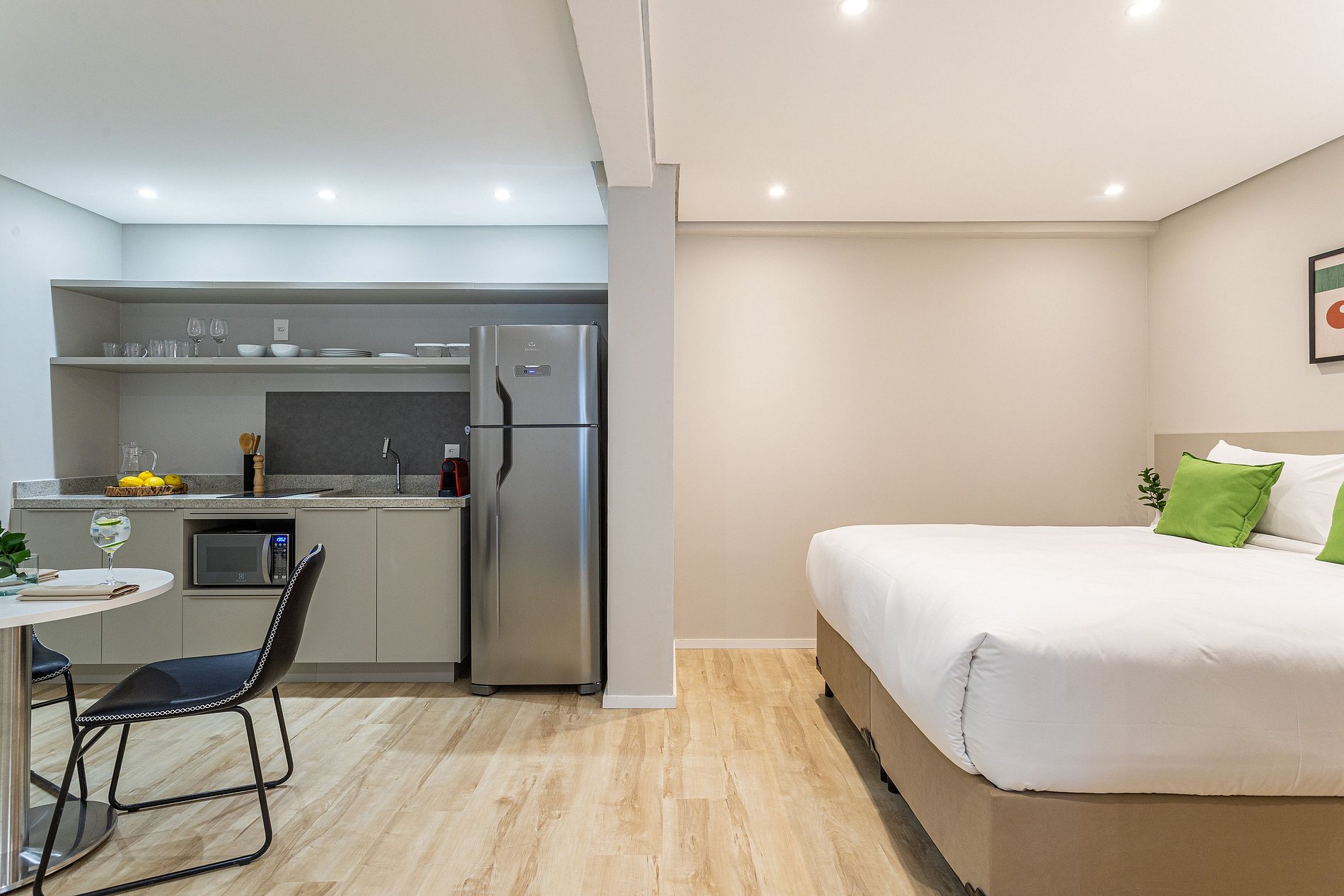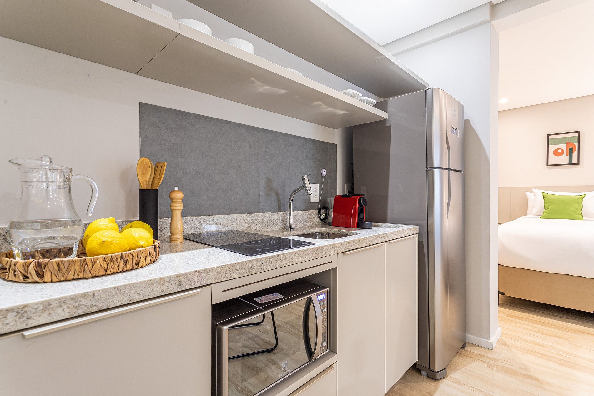 *A decoração e as amenidades dos apartamentos podem ter variações como cafeteira (pó x cápsula), ferro de passar x steamer, fogão x cooktop (com ou sem forno).
