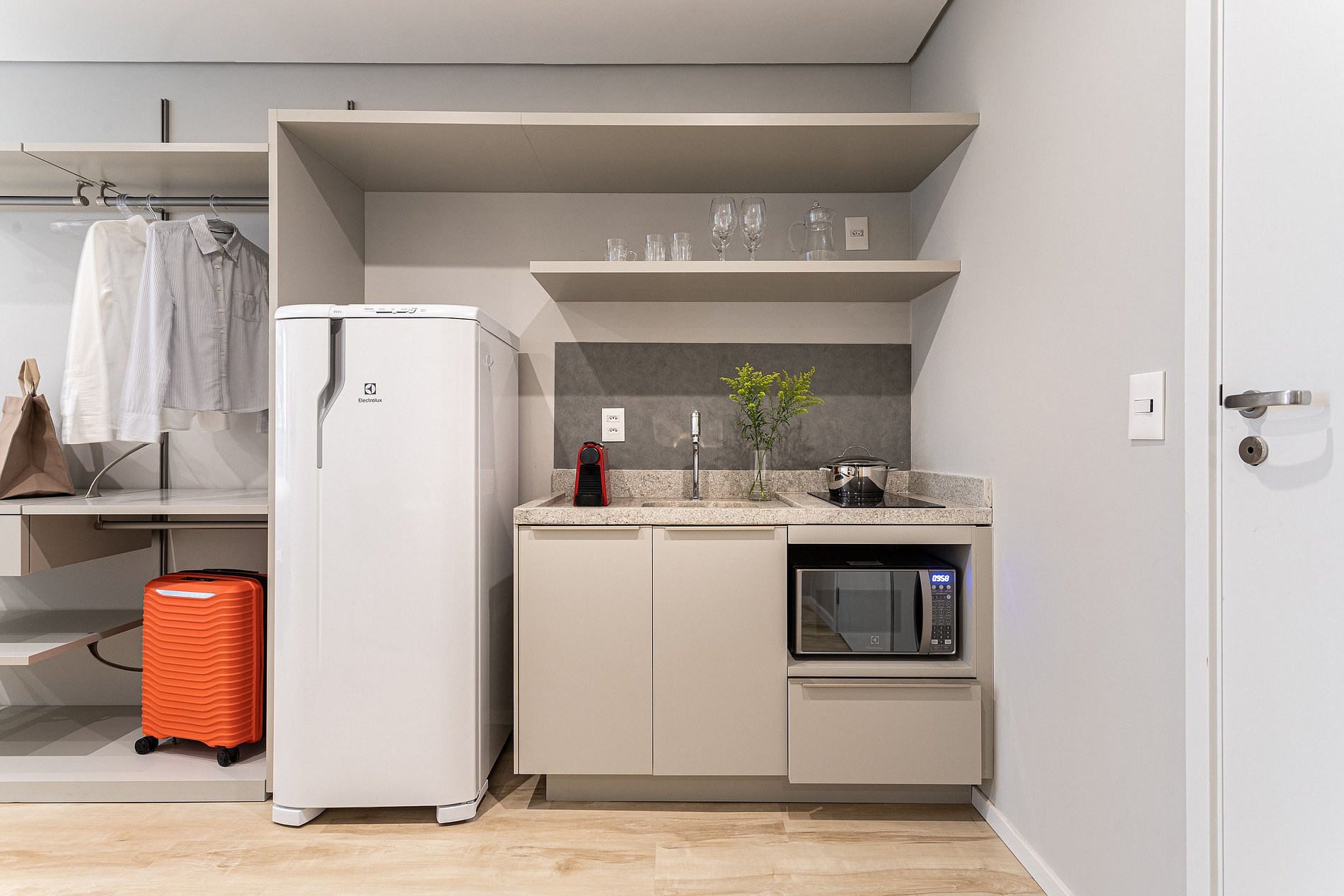 - A decoração e as amenidades dos apartamentos podem ter variações como cafeteira (pó x cápsula), ferro de passar x steamer, fogão x cooktop (com ou sem forno).