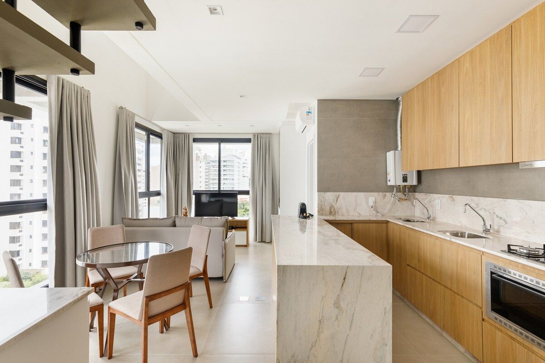 A decoração e as amenidades dos apartamentos podem ter variações como cafeteira (pó x cápsula), ferro de passar x steamer, fogão x cooktop (com ou sem forno).