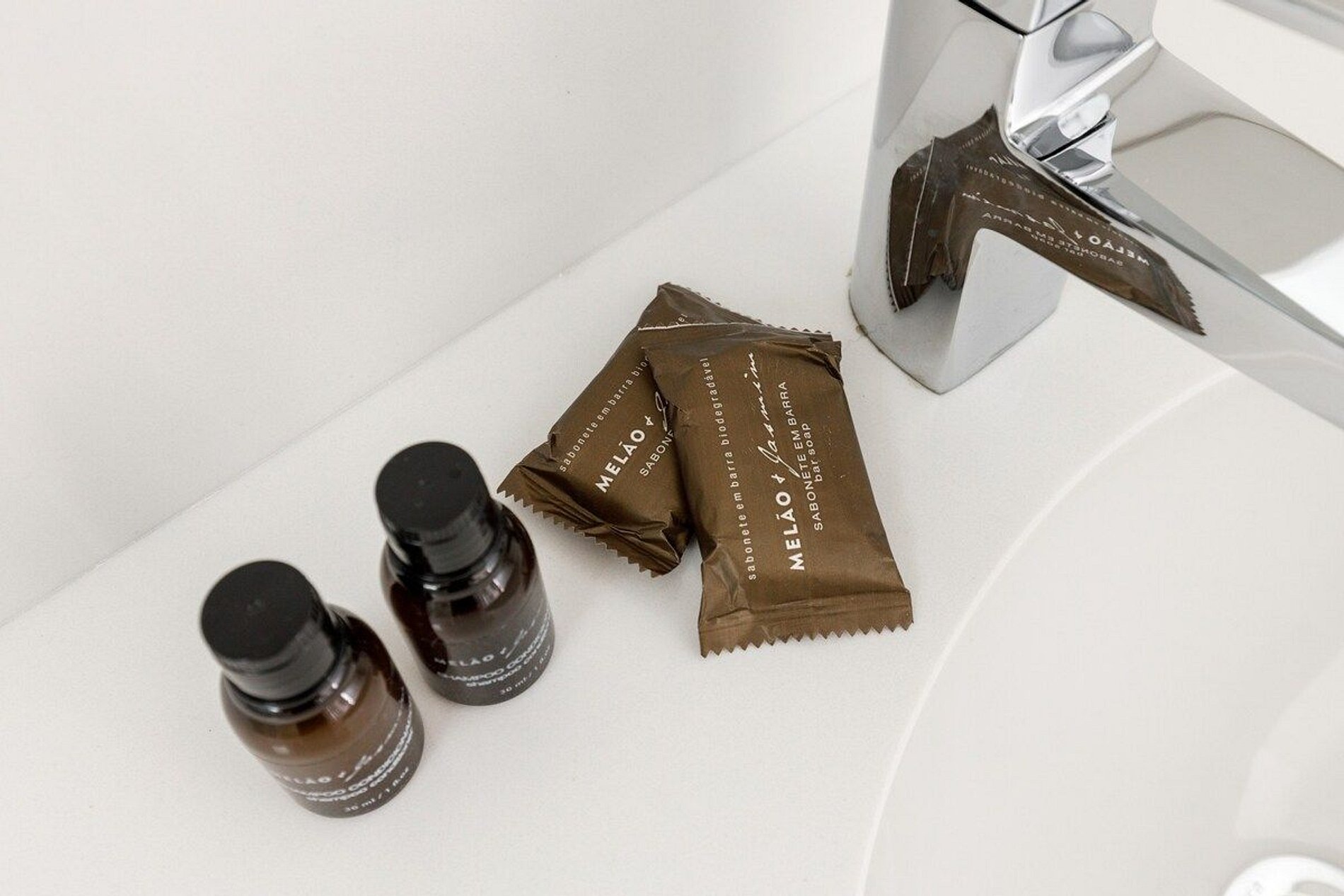 - Amenidades essenciais (cortesia na chegada, sem reposição durante a estadia)