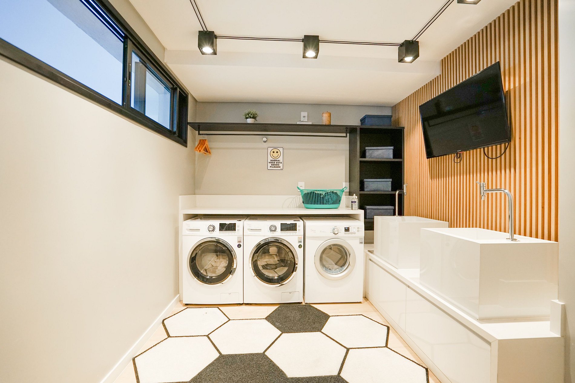 Lavanderia (Andar térreo, 8h as 22h, serviço pago, uso compartilhado e mediante disponibilidade)