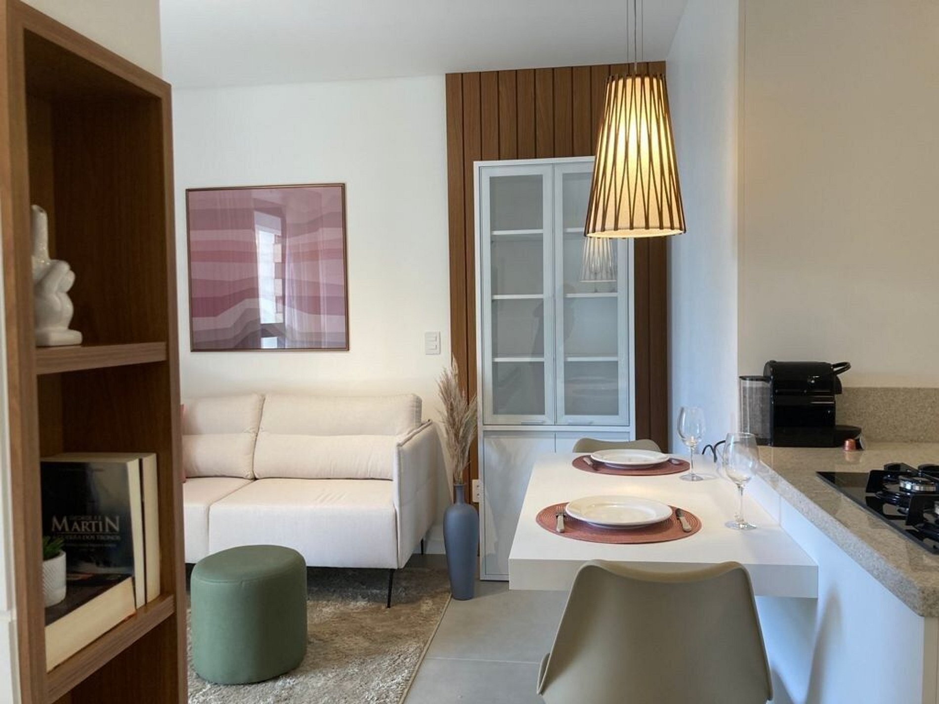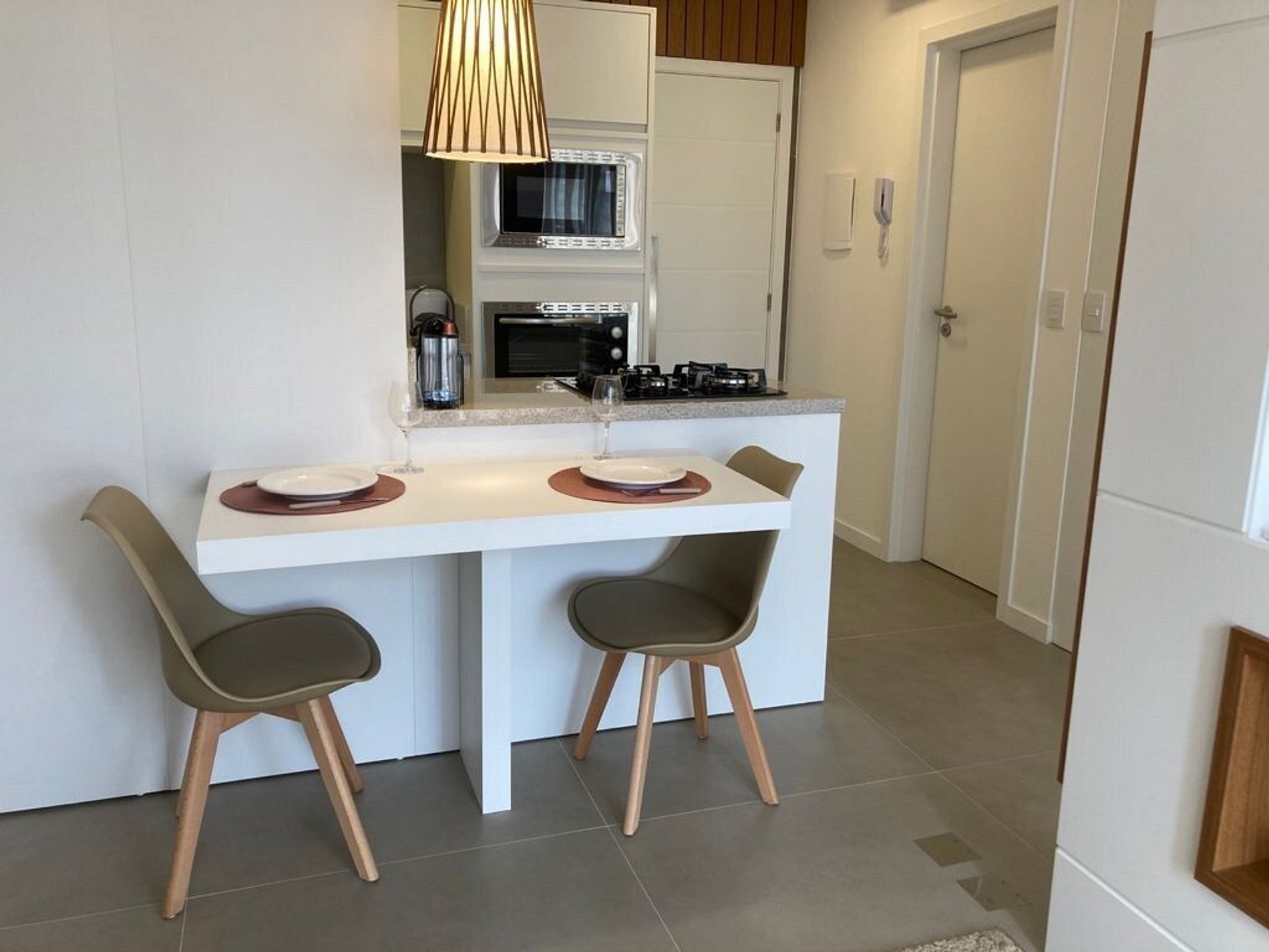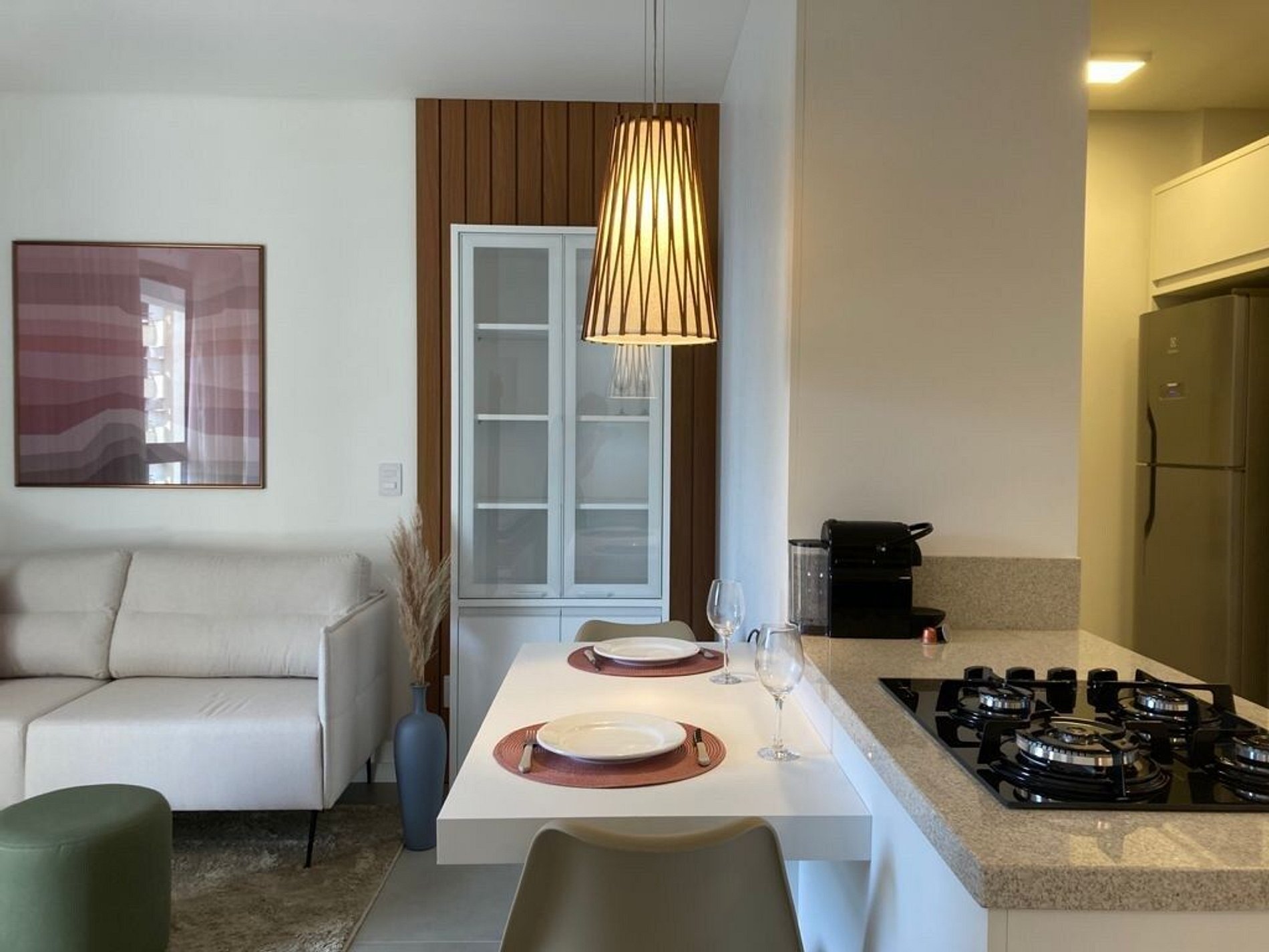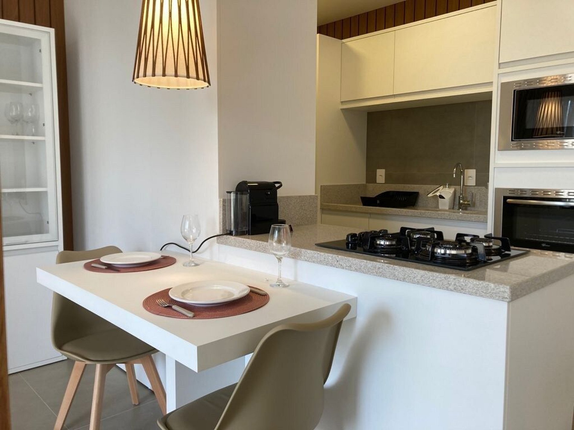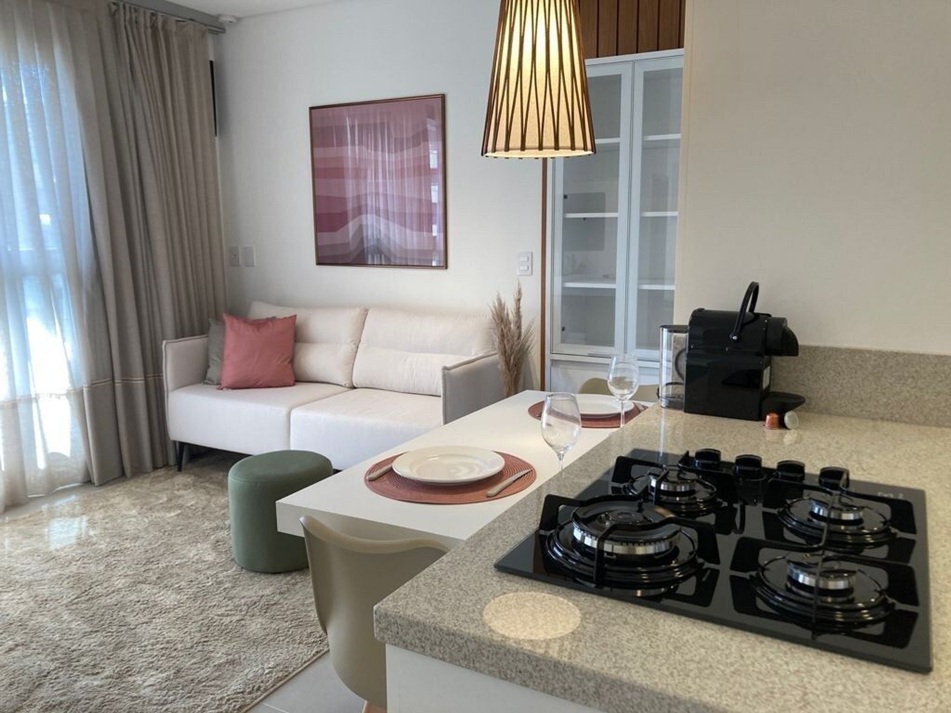 - A decoração e as amenidades dos apartamentos podem ter variações como cafeteira (pó ou cápsula), ferro de passar x steamer, fogão x cooktop (com ou sem forno).
