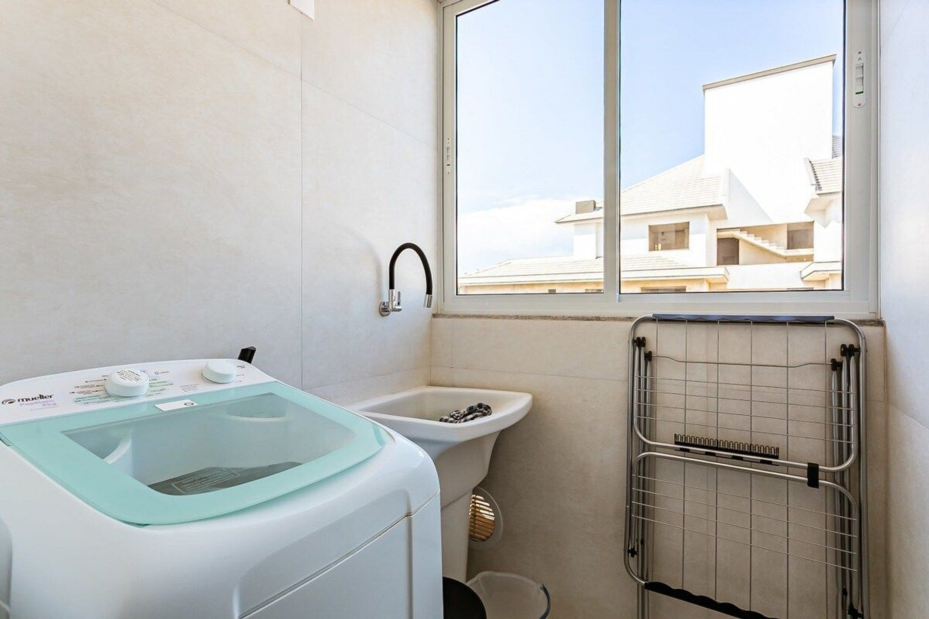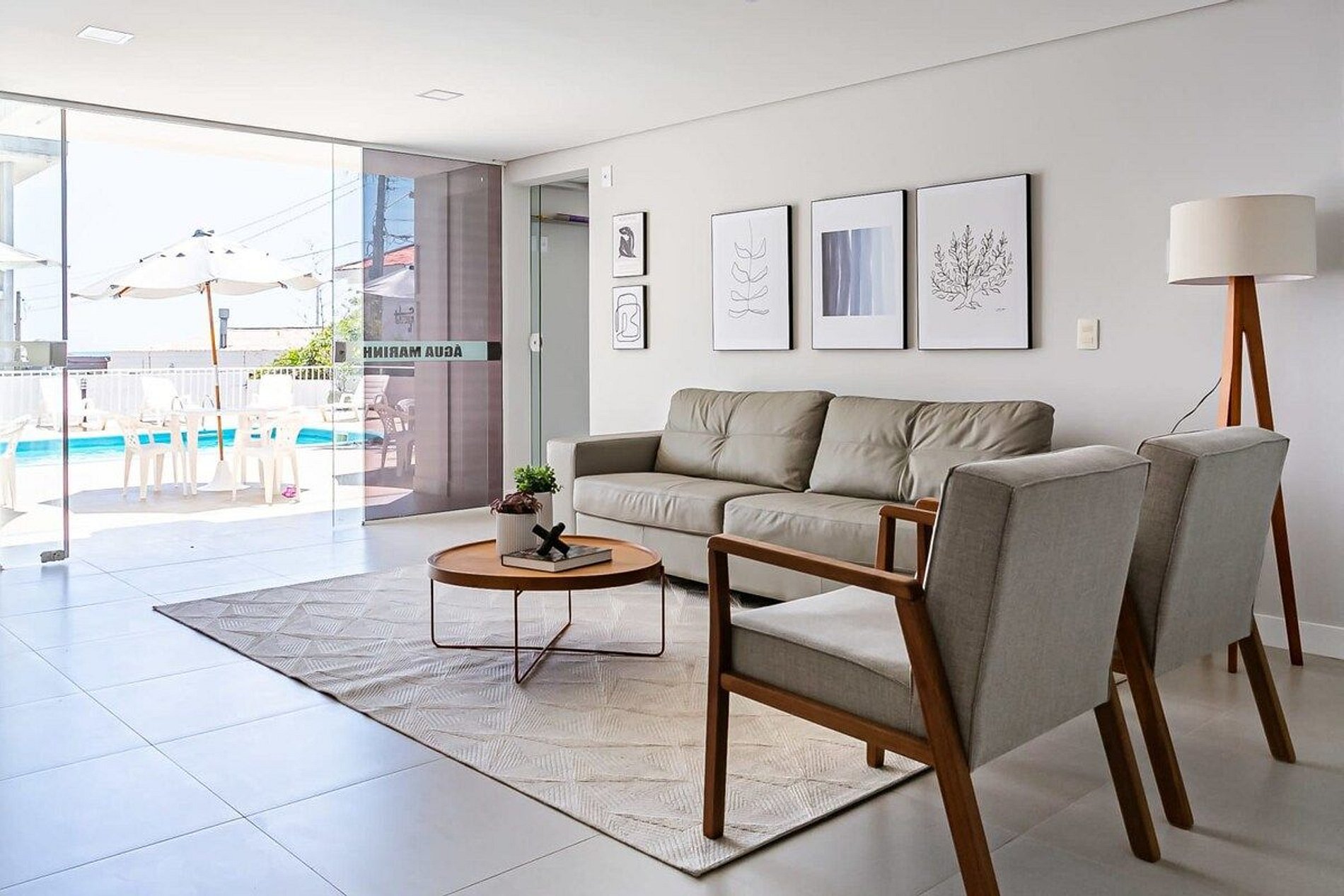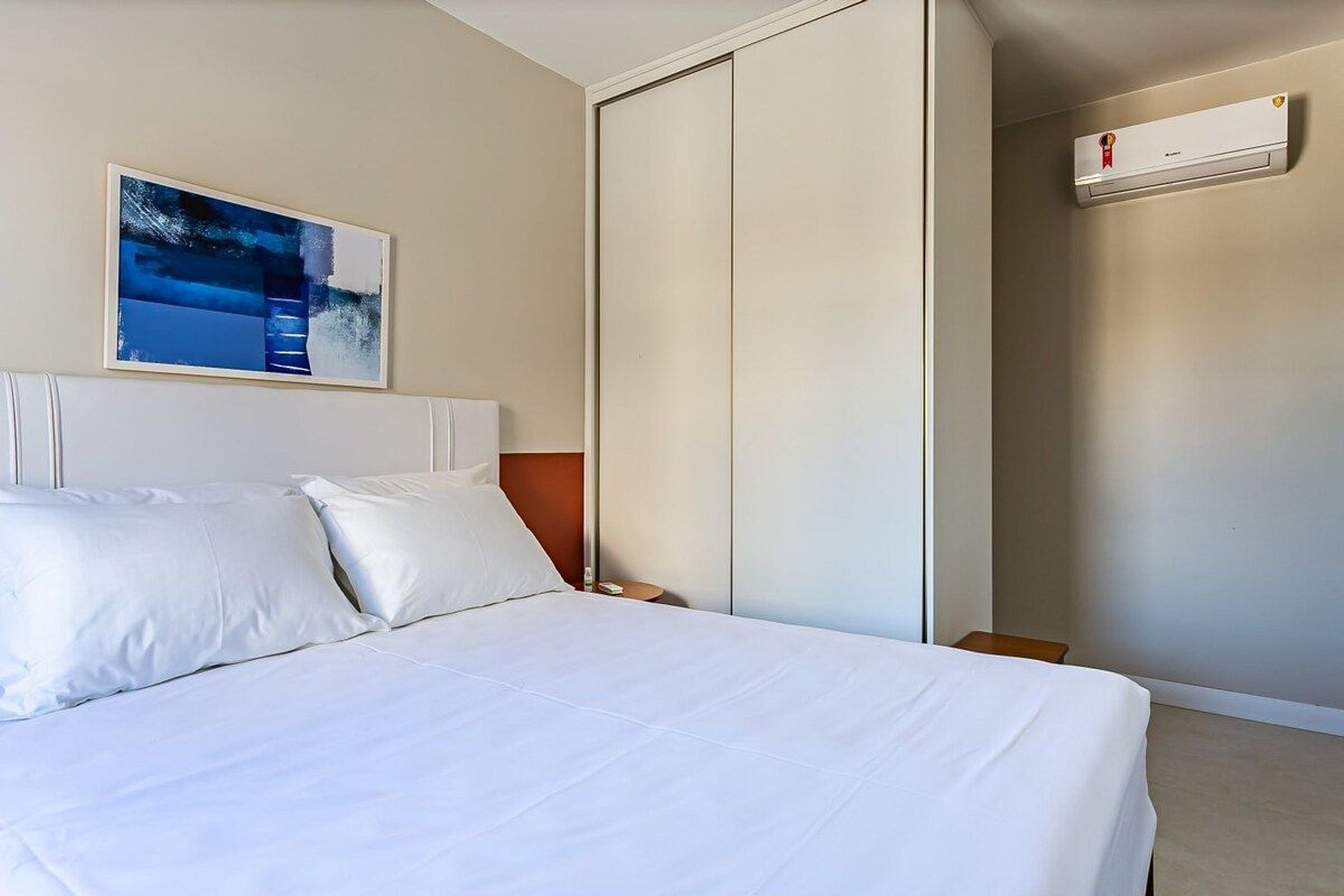 O apartamento é funcional e conta com cozinha completa, ar-condicionado e churrasqueira. O prédio é moderno e possui piscina, academia, lavanderia e churrasqueira no terraço que você poderá desfrutar durante sua estadia.