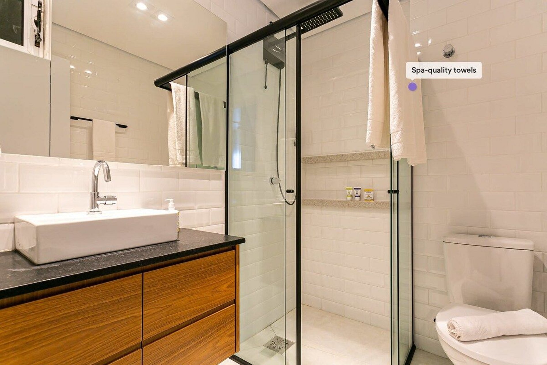 - Devido a procedimentos internos de segurança e logística da administração do prédio, não é possível deixar as malas no prédio antes do horário de check-in. - Possuímos atendimento 100% virtual 24h. - Oferecemos limpeza diária a um custo adicional. Fale conosco para mais informações. - Check in a partir das 15h00 e check out até às 11h00. - São permitidos animais de estimação por uma taxa adicional. - Todas TVs são SMART e possuem canais abertos disponíveis. - Os apartamentos não dispõem de cobertor extra. Recomendamos levar um cobertor para dias mais frios. - Os aparelhos de ar-condicionado possuem apenas a função “esfriar”. - As portas e janelas do apartamento não possuem isolamento acústico e os hóspedes mais sensíveis a barulhos podem sentir incômodo com os sons externos, por esse motivo, disponibilizamos protetores auriculares para todos os hóspedes. - O apartamento não conta com produtos ou utensílios de limpeza. - Amenidades essenciais são cortesia na chegada (sem reposição durante a estadia). - A decoração e as amenidades dos apartamentos podem ter variações como cafeteira (pó x cápsula), ferro de passar x steamer, fogão x cooktop (com ou sem forno). - As áreas comuns anunciadas estão sujeitas a interdição para manutenções ou outros motivos similares, definidas exclusivamente pela administração do condomínio, ainda que sejam eventuais e pouco frequentes. Por isso, a utilização de qualquer uma delas está sujeita a esta disponibilidade; - Temos diferentes espaços nesta propriedade, todos eles projetados para você ter uma ótima estadia — enquanto nosso estilo é consistente, alguns aspectos mínimos podem mudar, como exemplo um vaso de flor ou podemos ter retirado o tapete para higienização. - Menores de idade devem estar acompanhando de pai ou responsável legal - necessária a apresentação de documento; Em caso de ser um terceiro: ter procuração autenticada no cartório. - De acordo com as regras do condomínio, solicitamos informações adicionais de identidade assim que sua reserva for confirmada. - Gostaríamos de lembrá-los que, para garantir o conforto e a saúde de todos, é estritamente proibido fumar nas acomodações e nas áreas comuns do nosso espaço. Esta política foi criada para promover um ambiente mais saudável e agradável para todos.