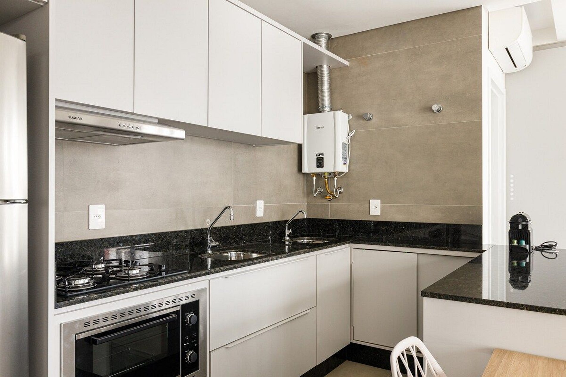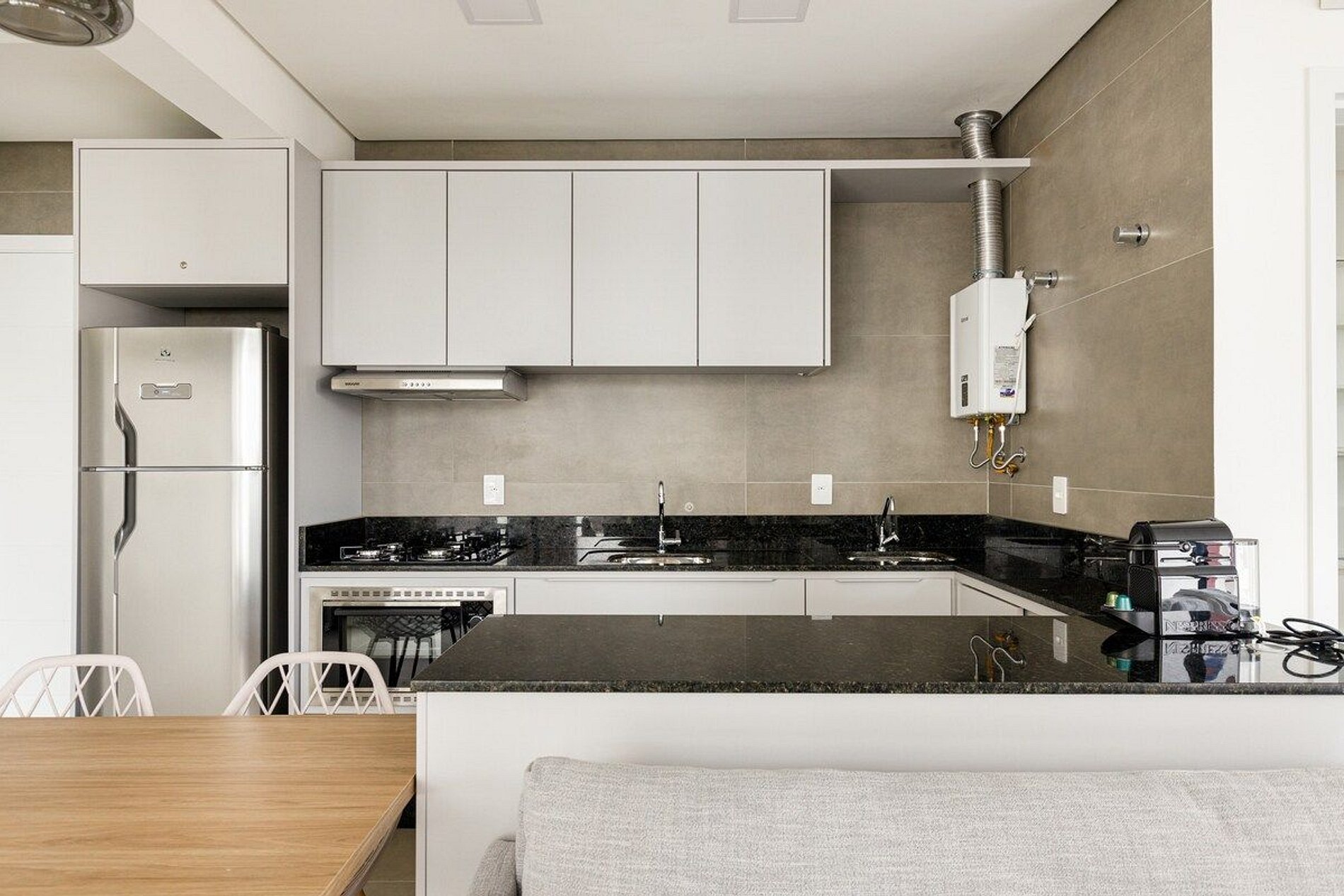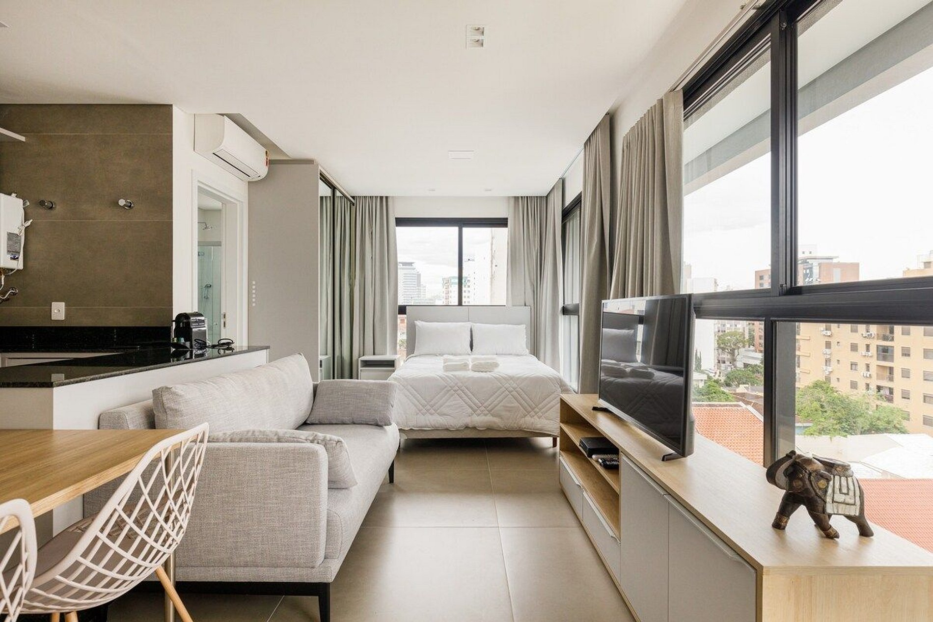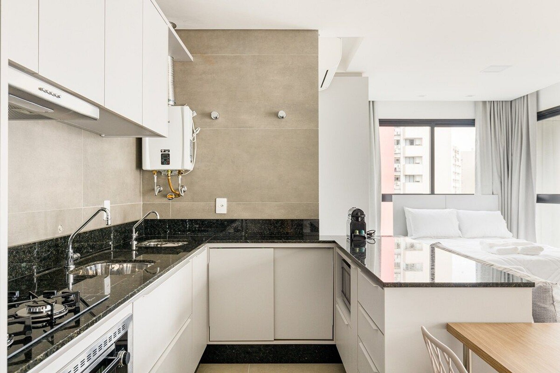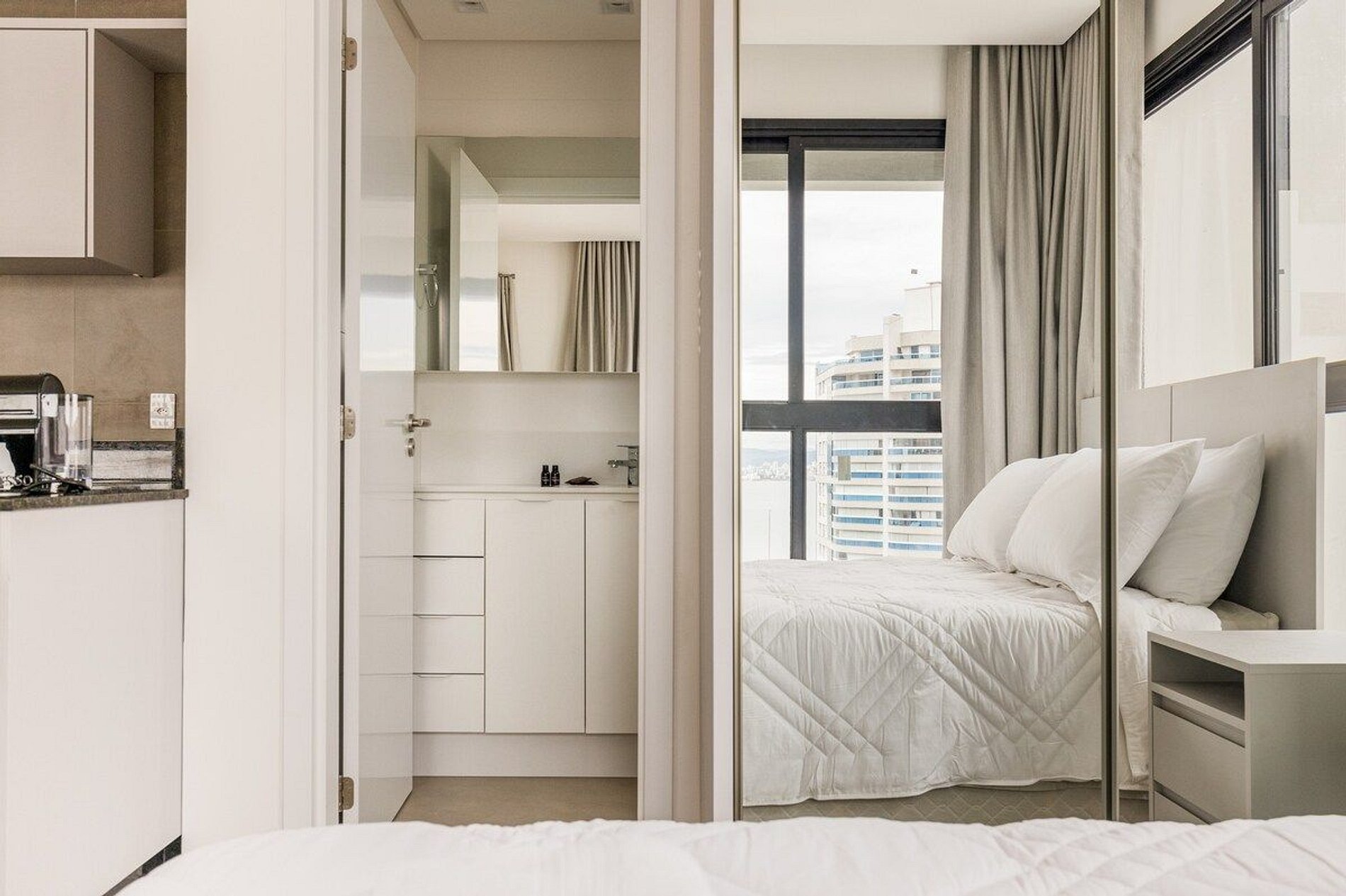A decoração e as amenidades dos apartamentos podem ter variações como cafeteira (pó x cápsula), ferro de passar x steamer, fogão x cooktop (com ou sem forno).