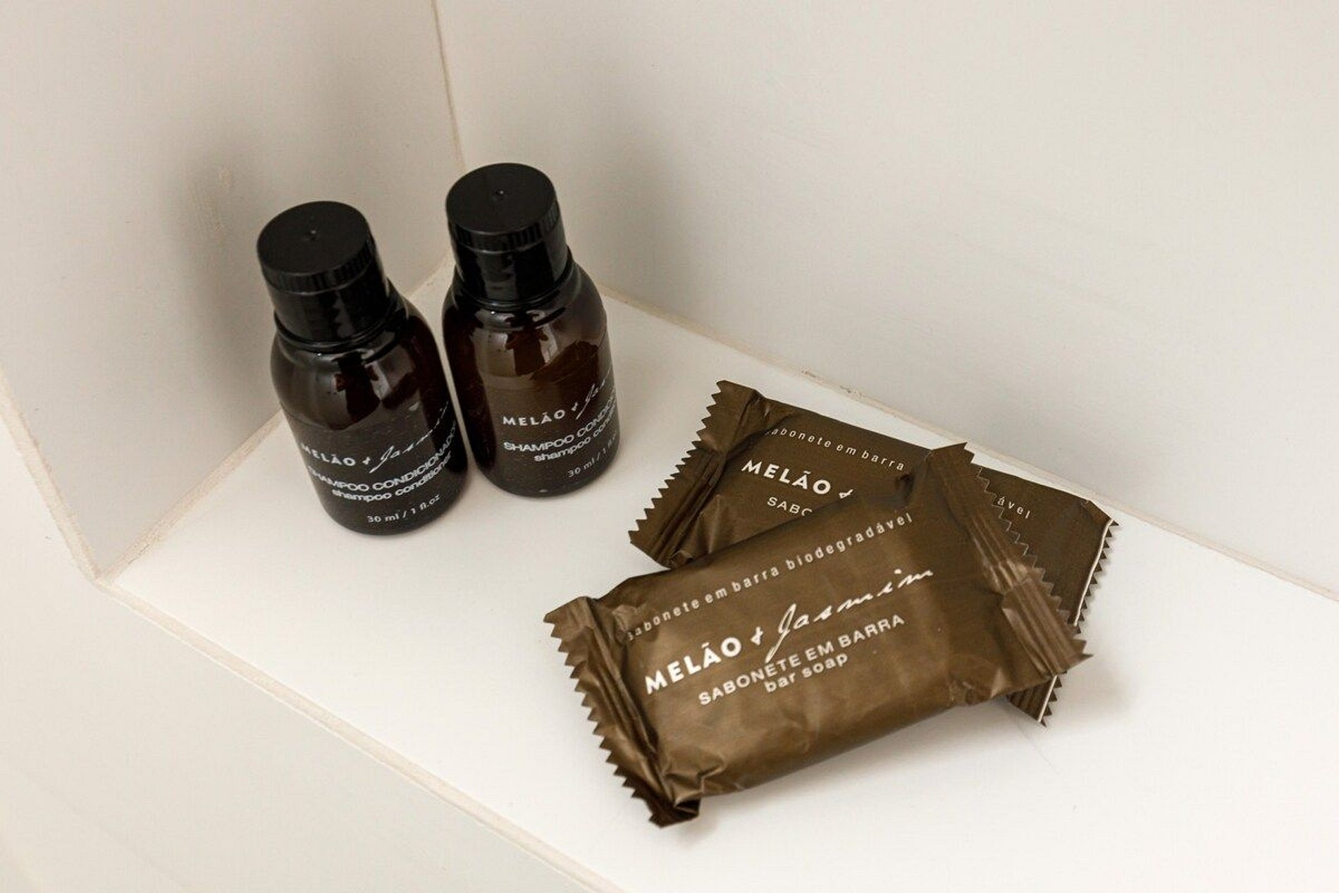 - Amenidades essenciais (cortesia na chegada, sem reposição durante a estadia)