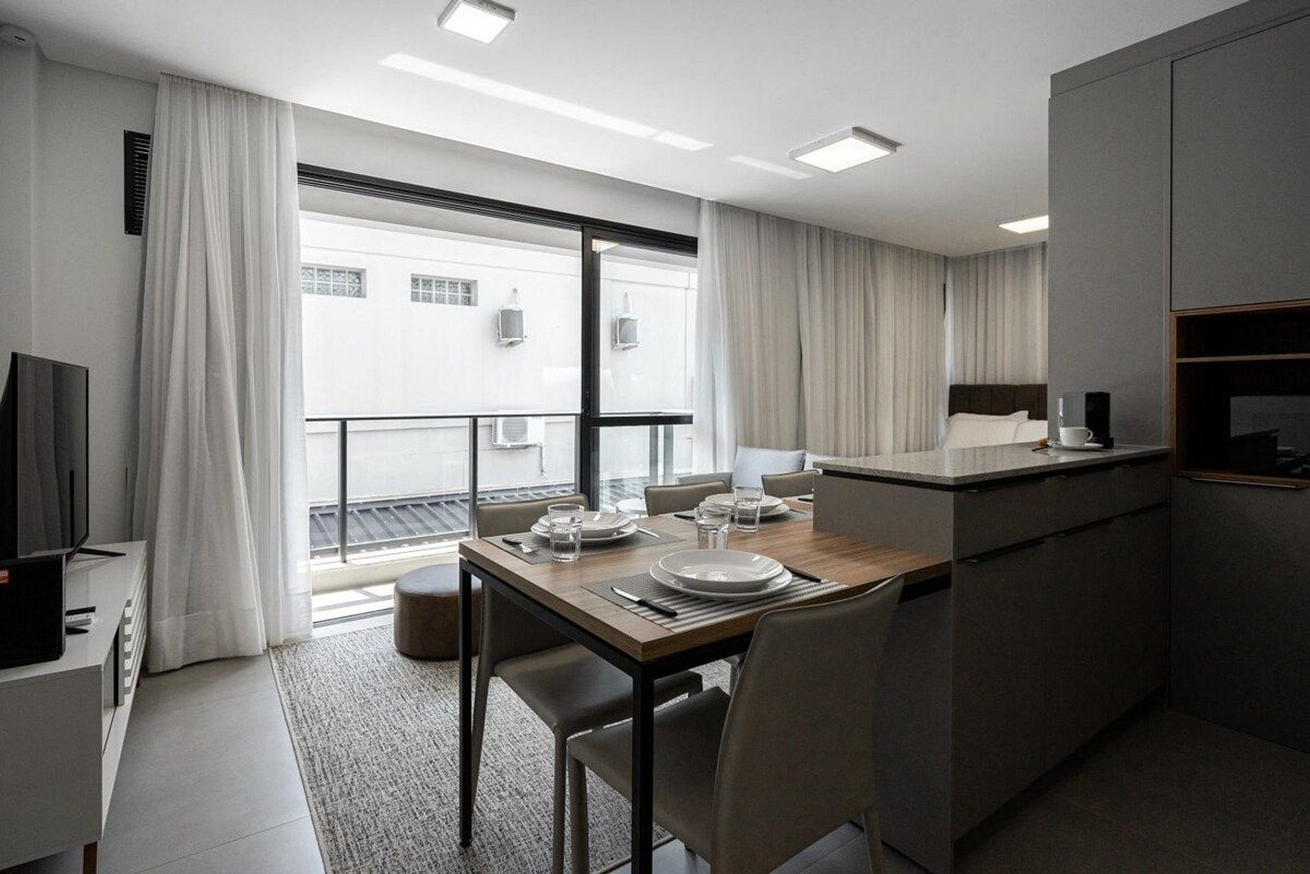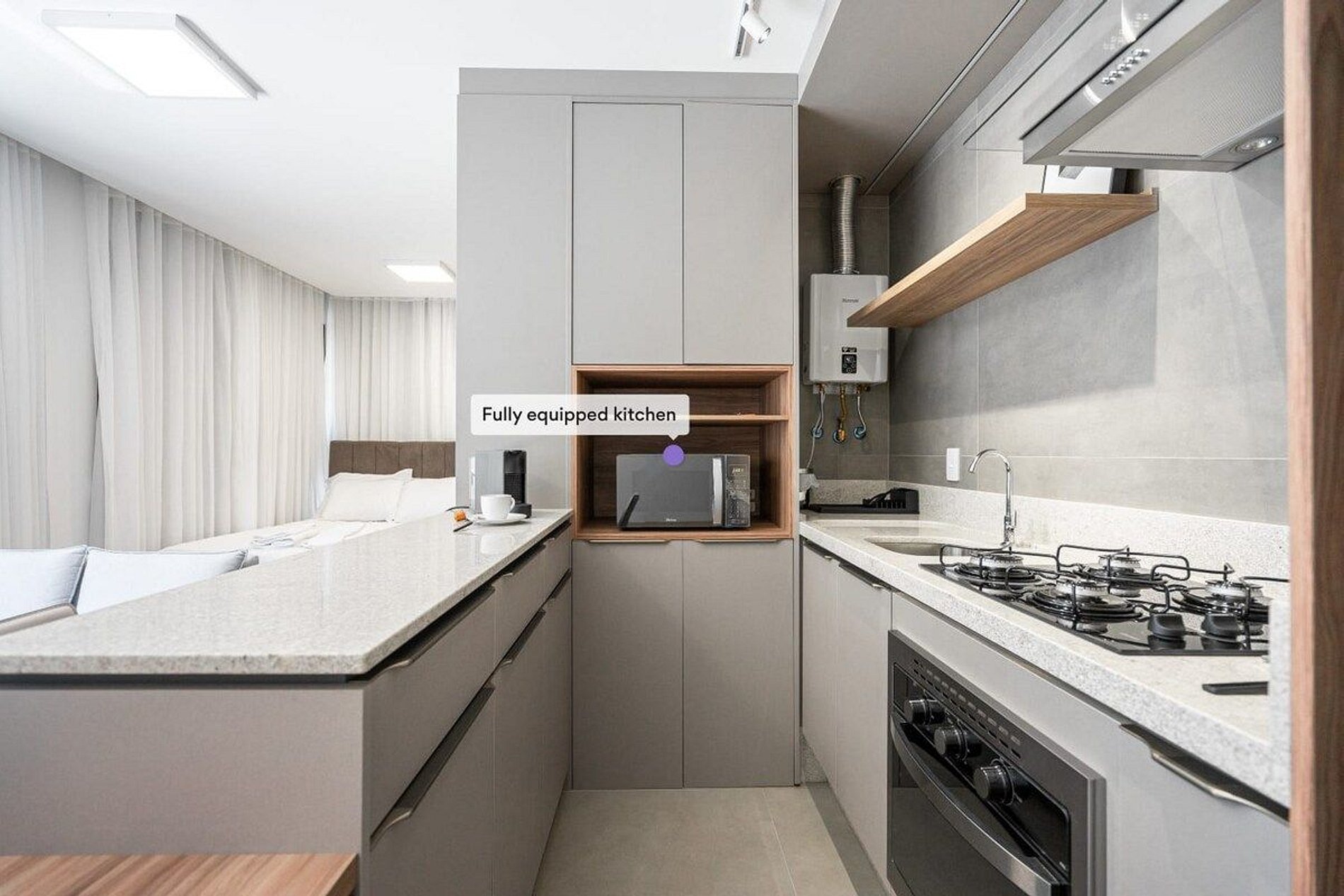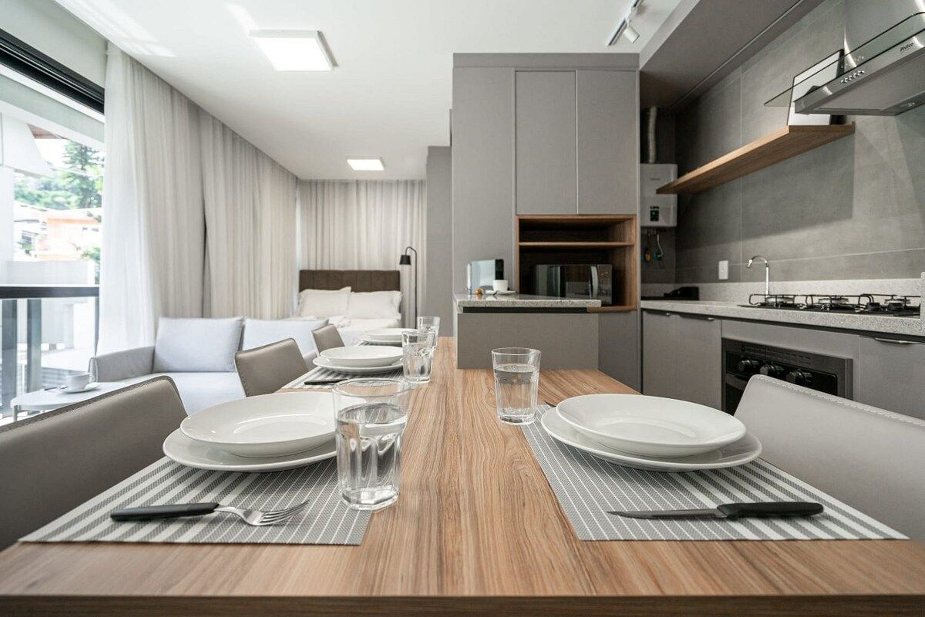 A decoração e as amenidades dos apartamentos podem ter variações como cafeteira (pó x cápsula), ferro de passar x steamer, fogão x cooktop (com ou sem forno).