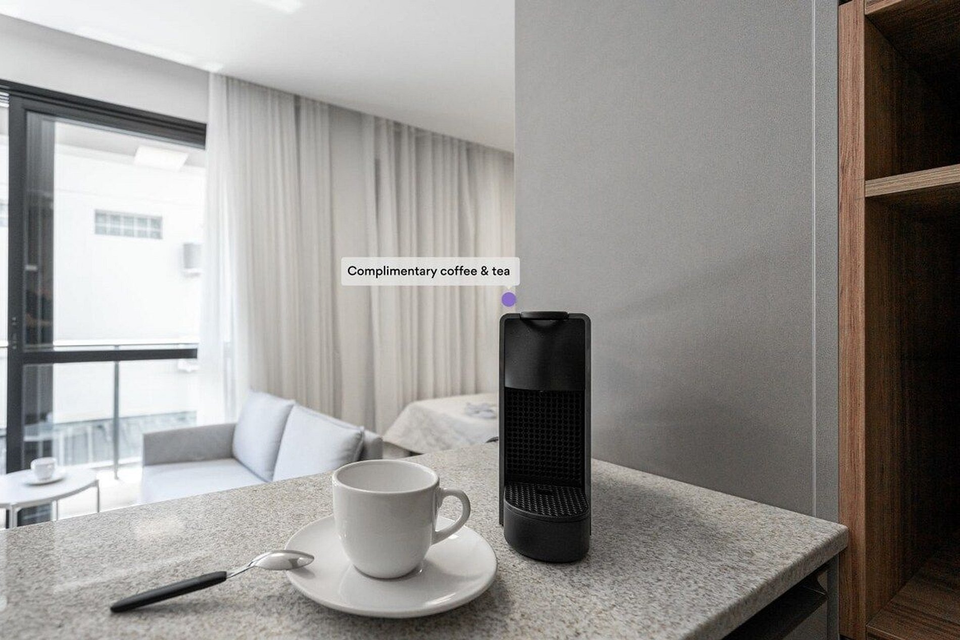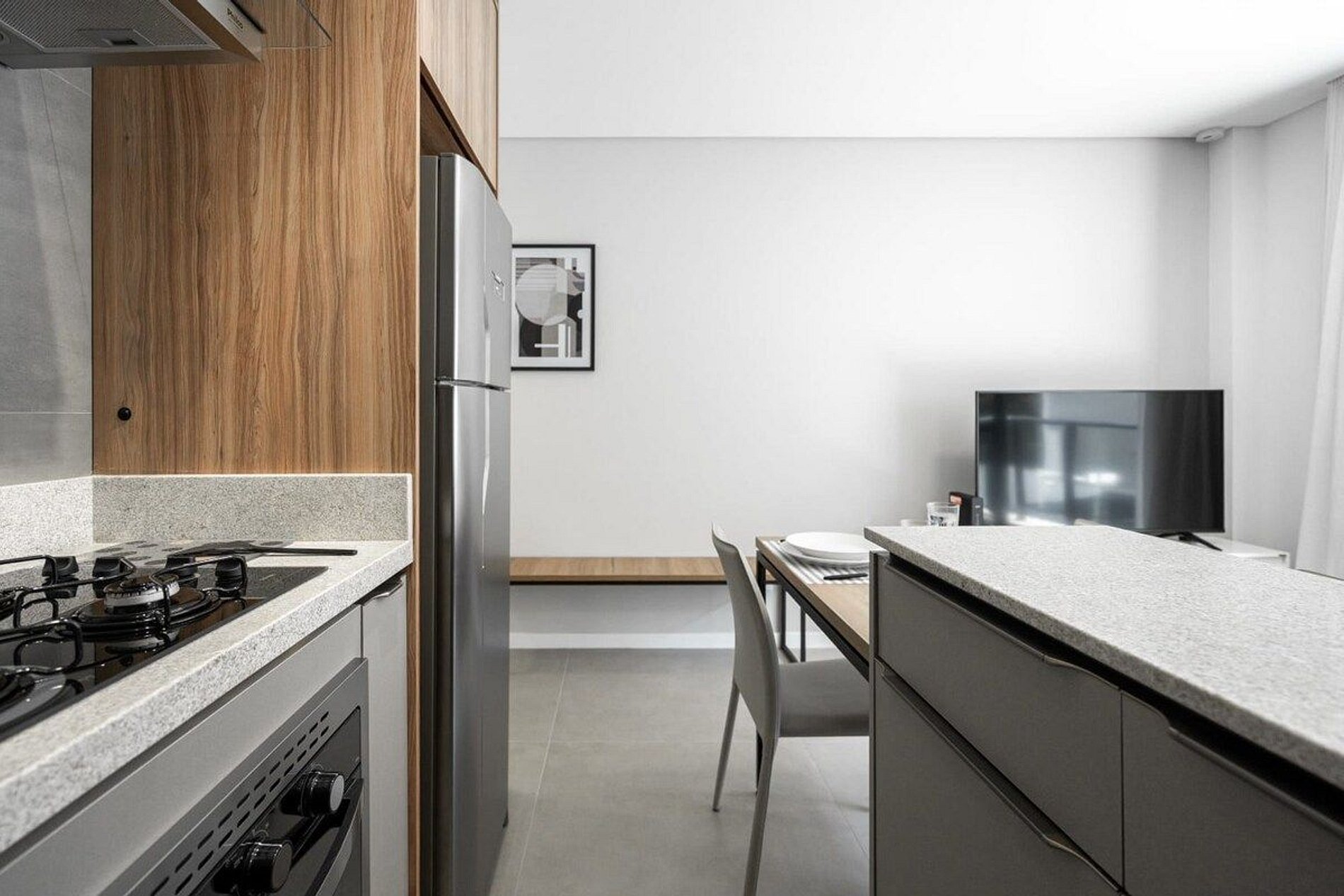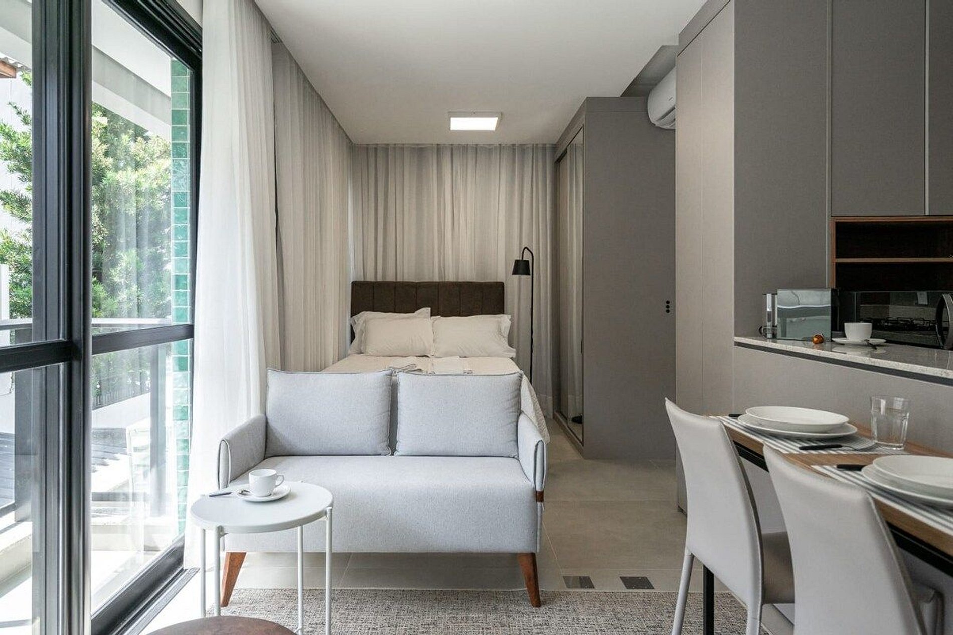 A decoração e as amenidades dos apartamentos podem ter variações como cafeteira (pó x cápsula), ferro de passar x steamer, fogão x cooktop (com ou sem forno).
