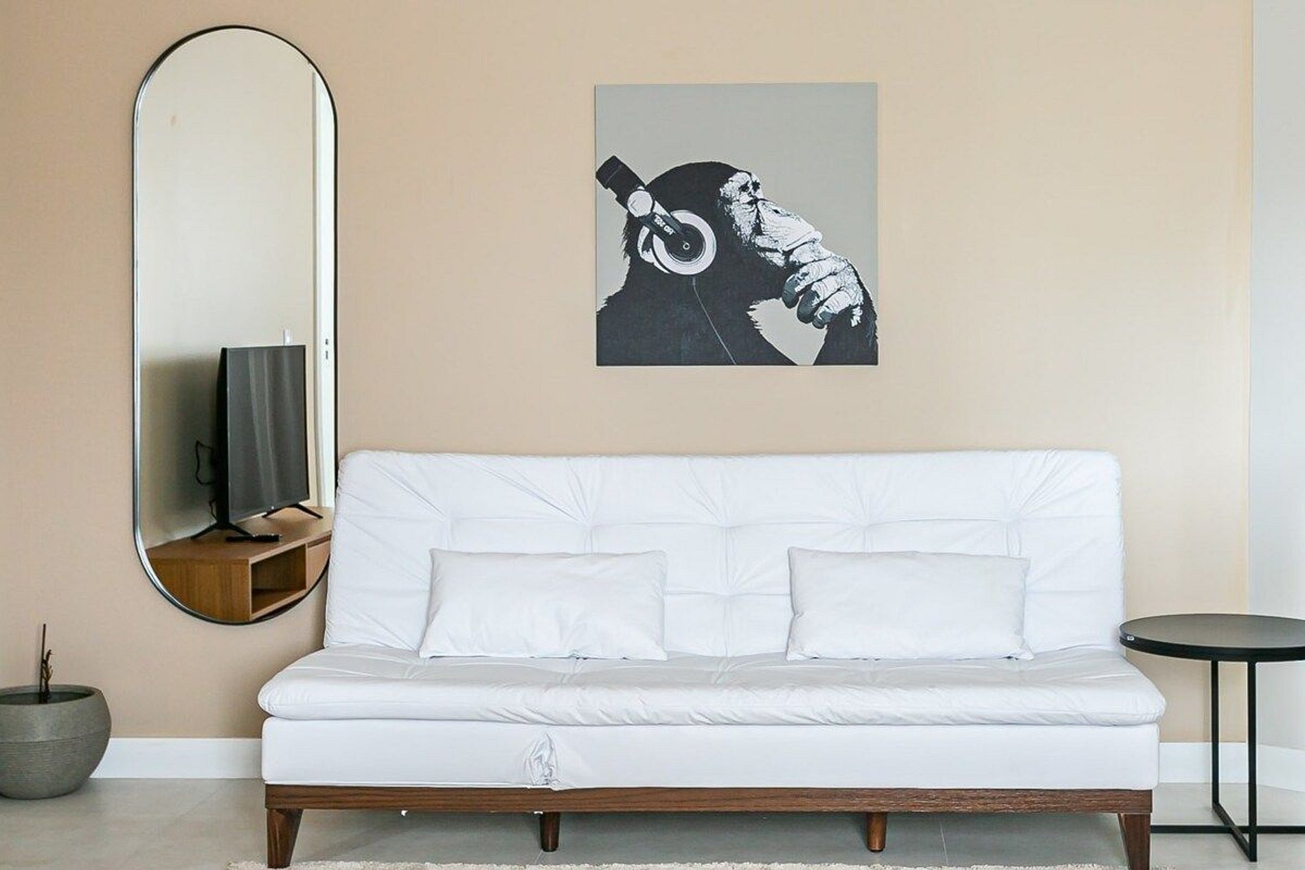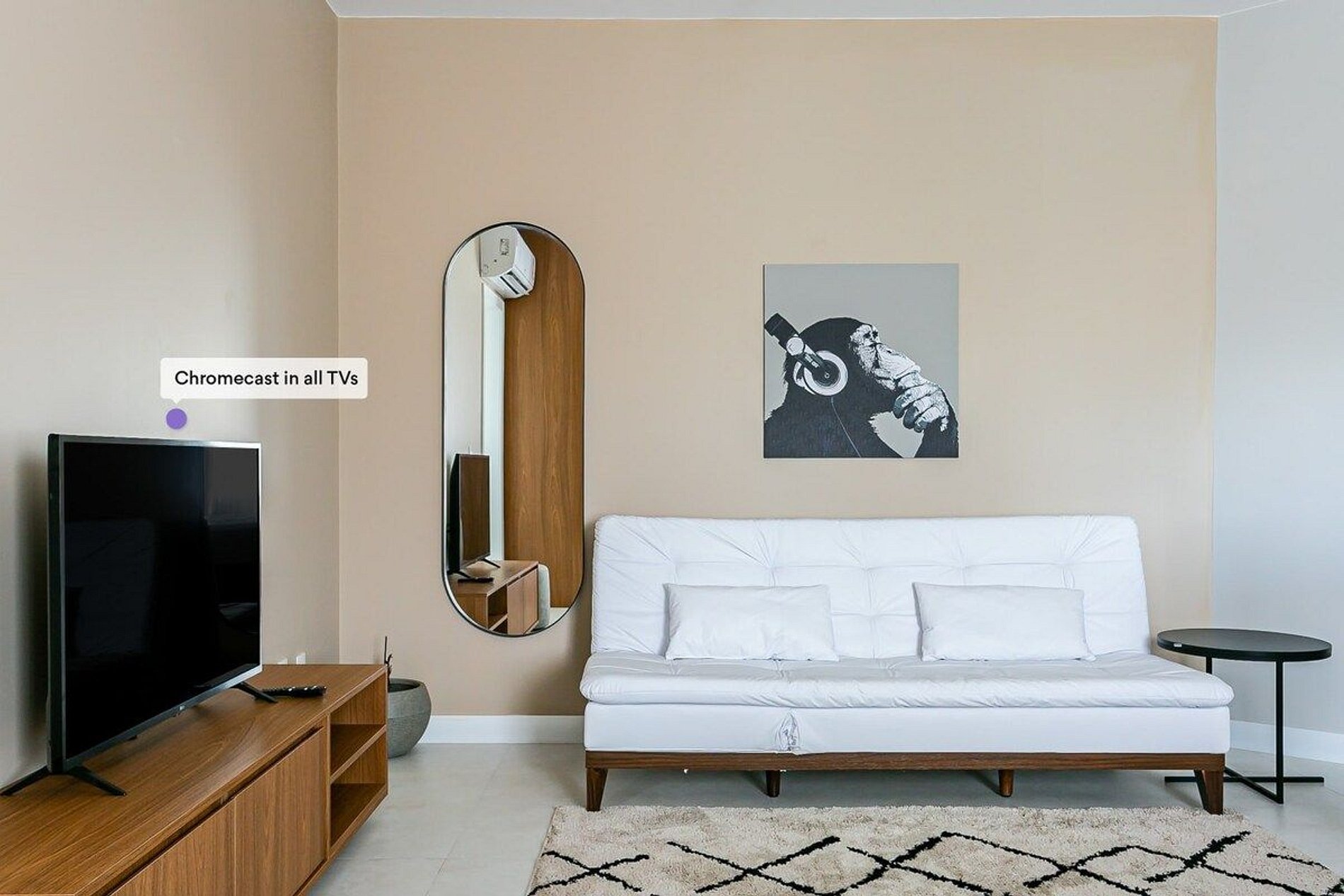 *A decoração e as amenidades dos apartamentos podem ter variações como cafeteira (pó x cápsula), ferro de passar x steamer, fogão x cooktop (com ou sem forno).*As portas e janelas do apartamento não possuem isolamento acústico e os hóspedes mais sensíveis a barulhos podem sentir incômodo com os sons externos, por esse motivo, disponibilizamos protetores auriculares para todos os hóspedes.*O apartamento não conta com produtos ou utensílios de limpeza.