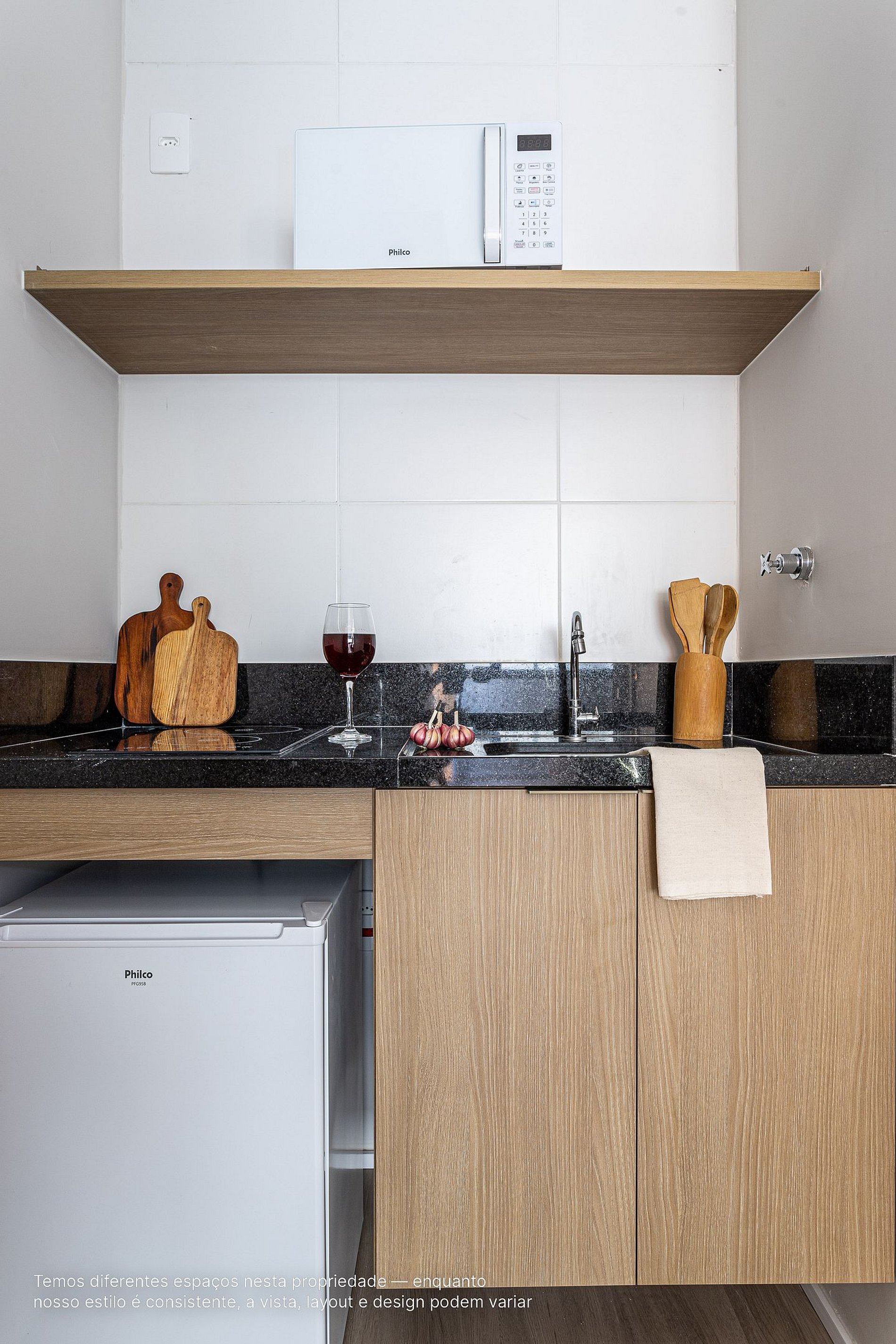 - Cozinha equipada com frigobar e cooktop