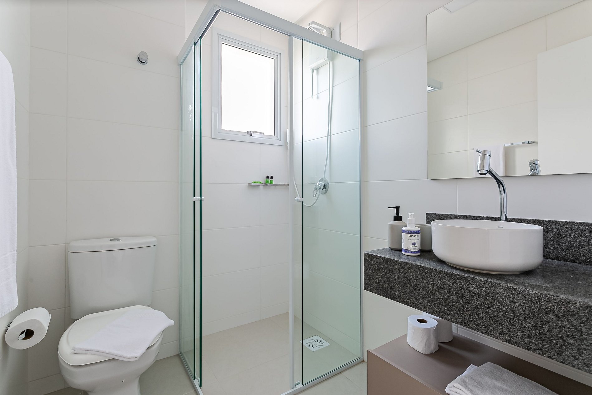 - Amenidades essenciais (cortesia na chegada, sem reposição durante a estadia)
