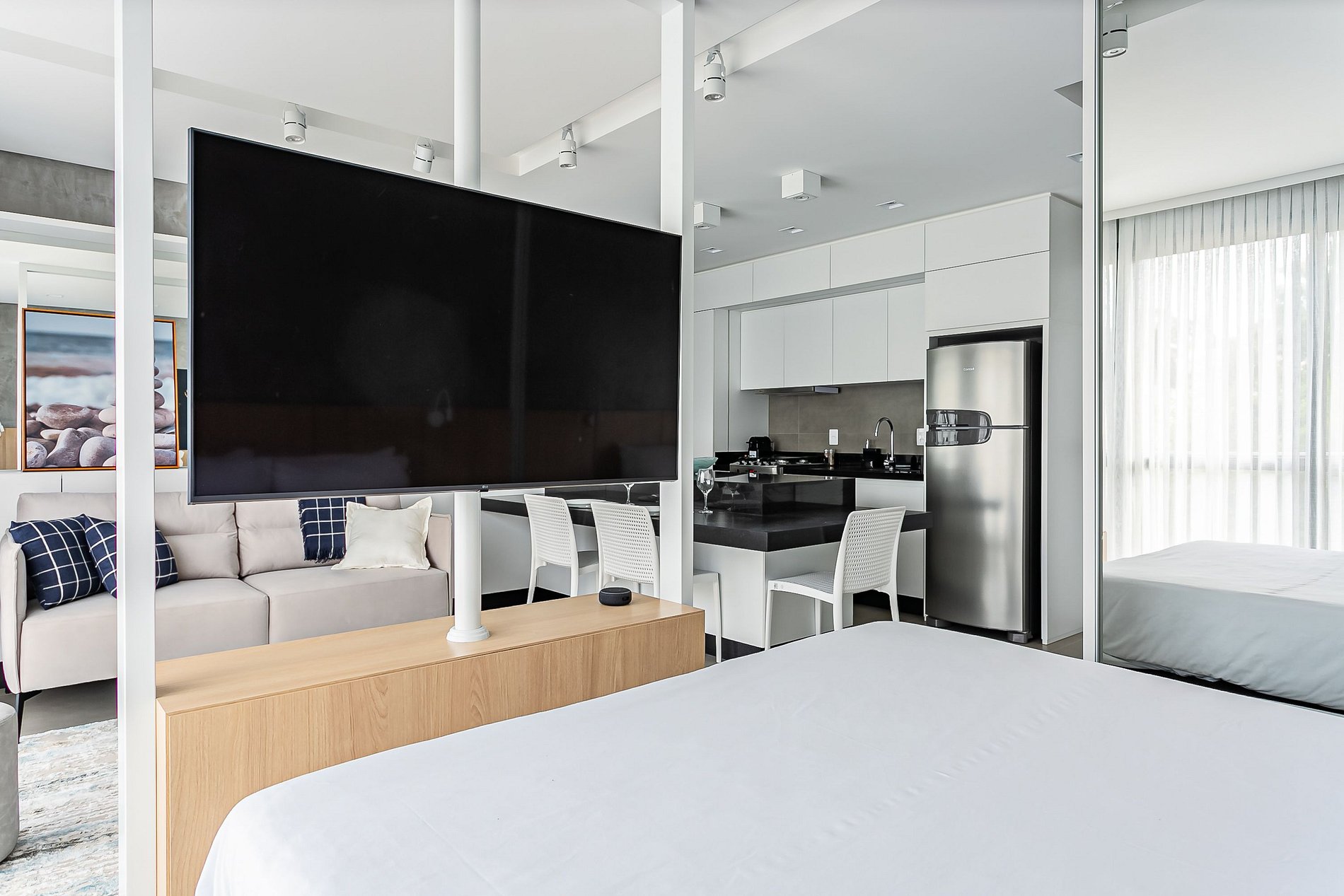 A decoração e as amenidades dos apartamentos podem ter variações como cafeteira (pó x cápsula), ferro de passar x steamer, fogão x cooktop (com ou sem forno).