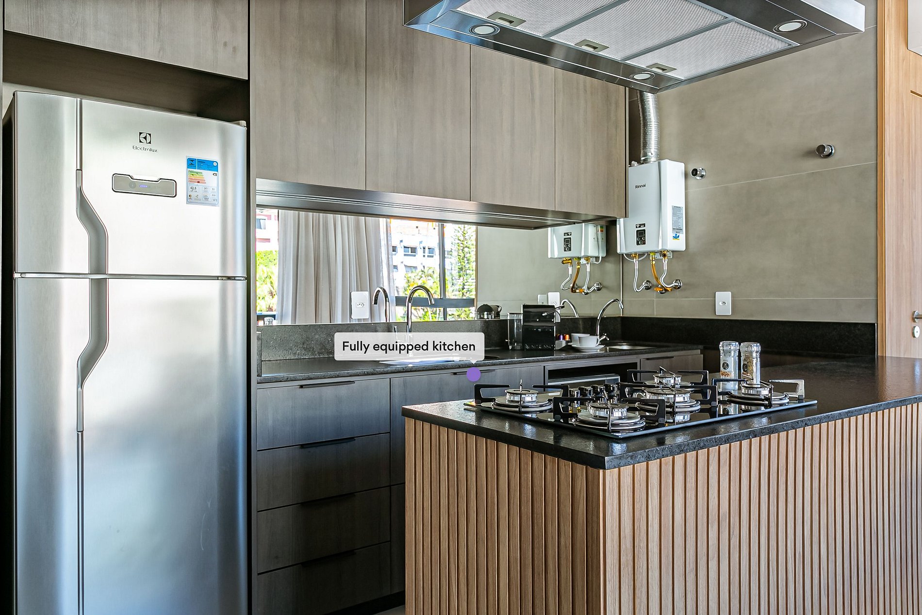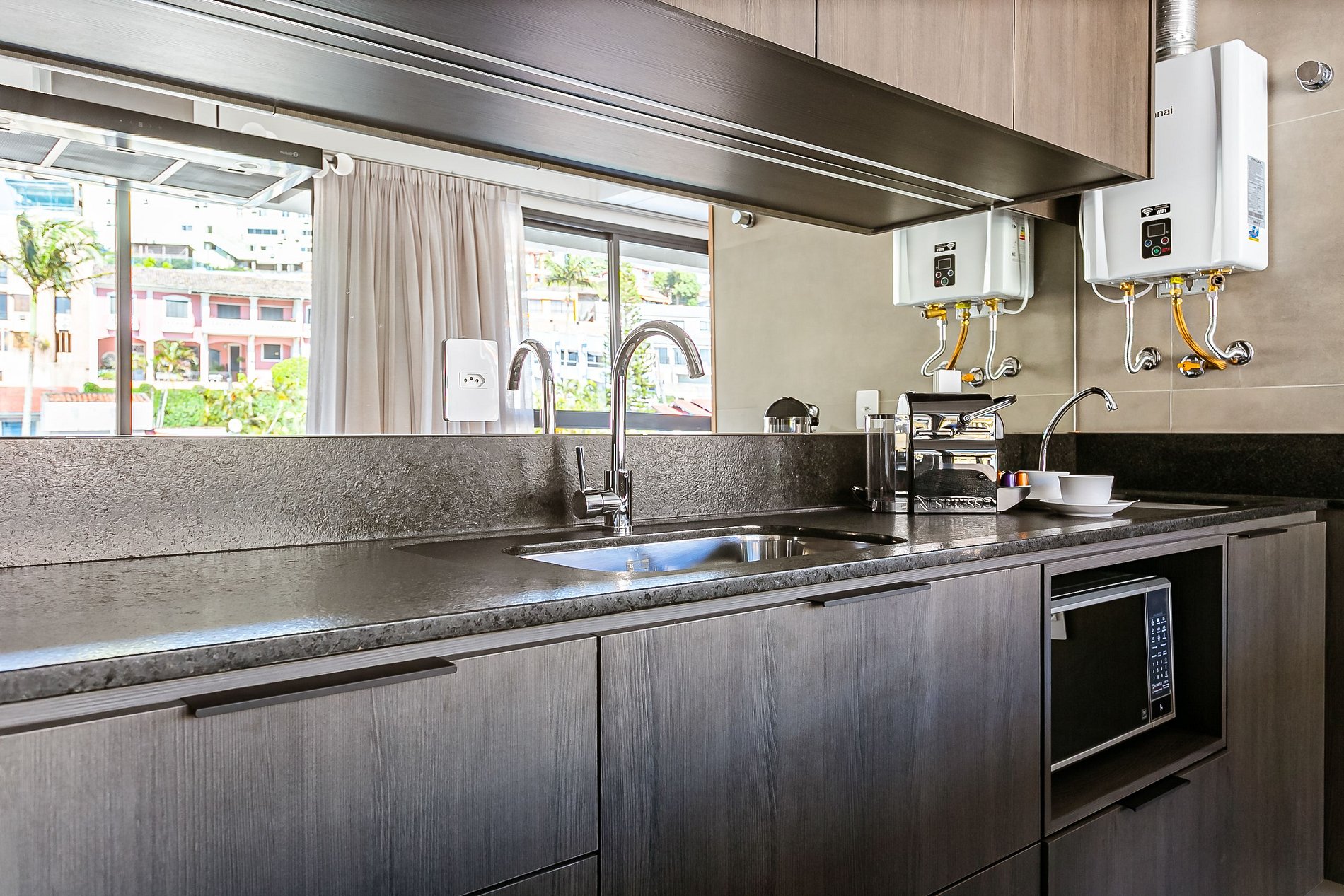 A decoração e as amenidades dos apartamentos podem ter variações como cafeteira (pó x cápsula), ferro de passar x steamer, fogão x cooktop (com ou sem forno).