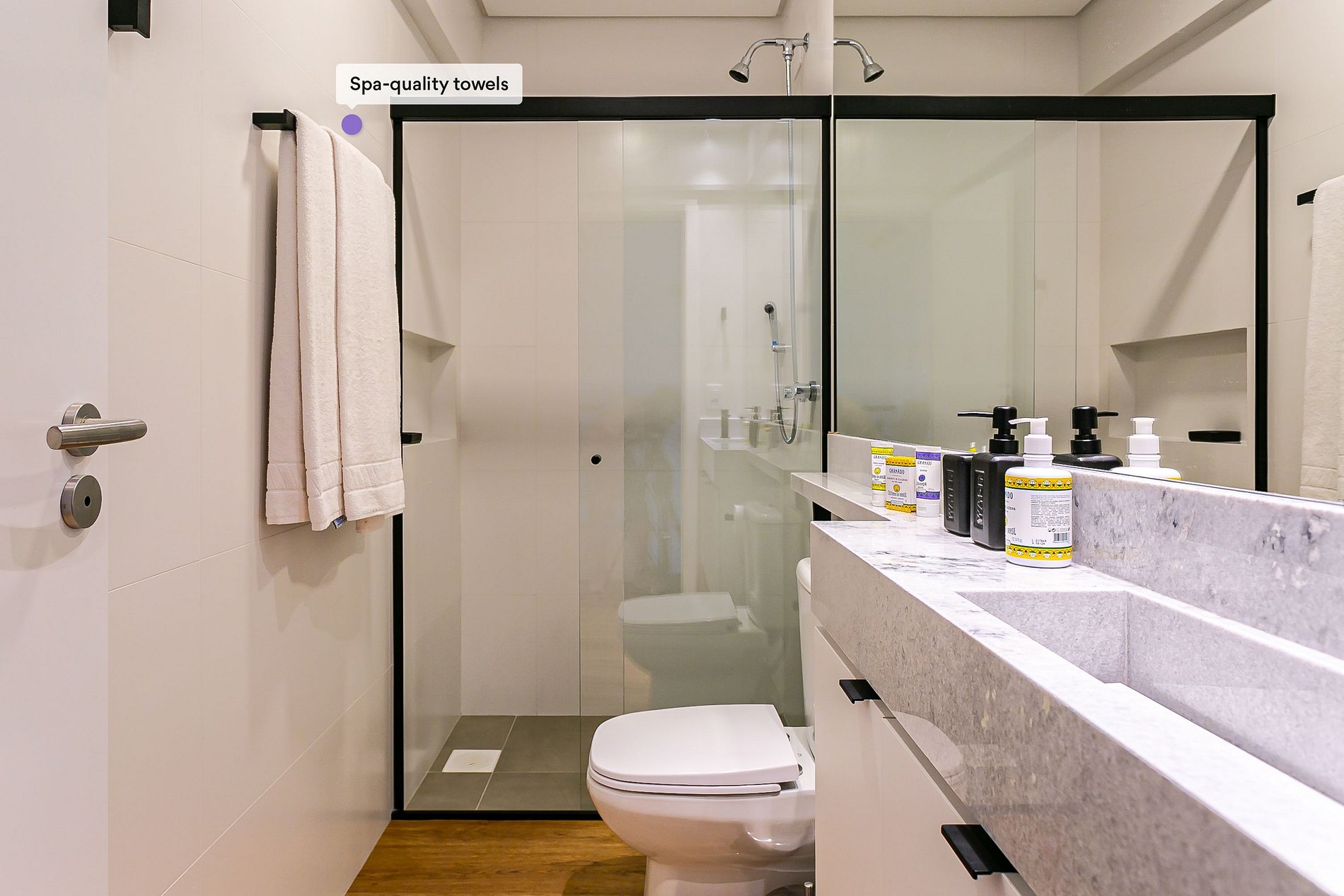 - Temos diferentes espaços nesta propriedade, todos eles projetados para você ter uma ótima estadia — enquanto nosso estilo é consistente, alguns aspectos mínimos podem mudar, como exemplo um vaso de flor ou podemos ter retirado o tapete para higienização.