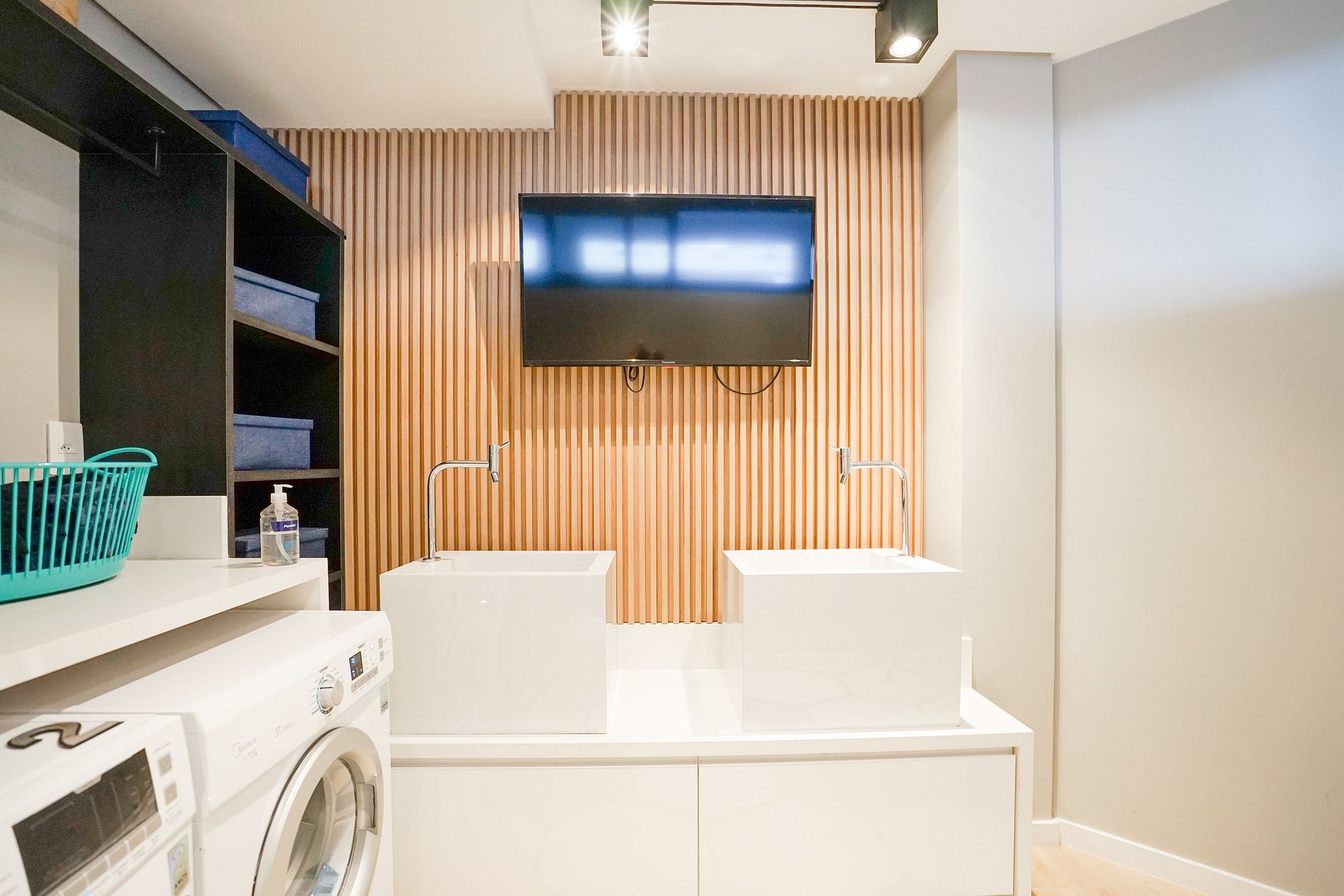 Lavanderia (Andar térreo, 8h as 22h, serviço pago, uso compartilhado e mediante disponibilidade)