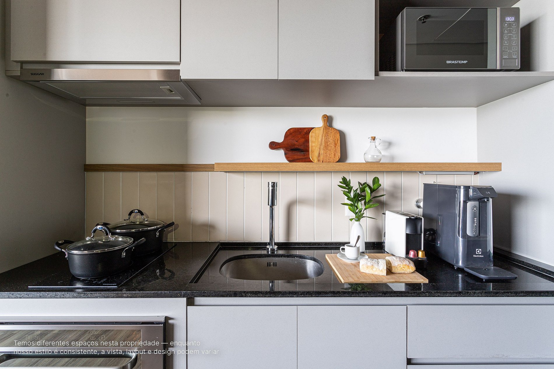 *A decoração e as amenidades dos apartamentos podem ter variações como cafeteira (pó x cápsula), ferro de passar x steamer, fogão x cooktop (com ou sem forno).