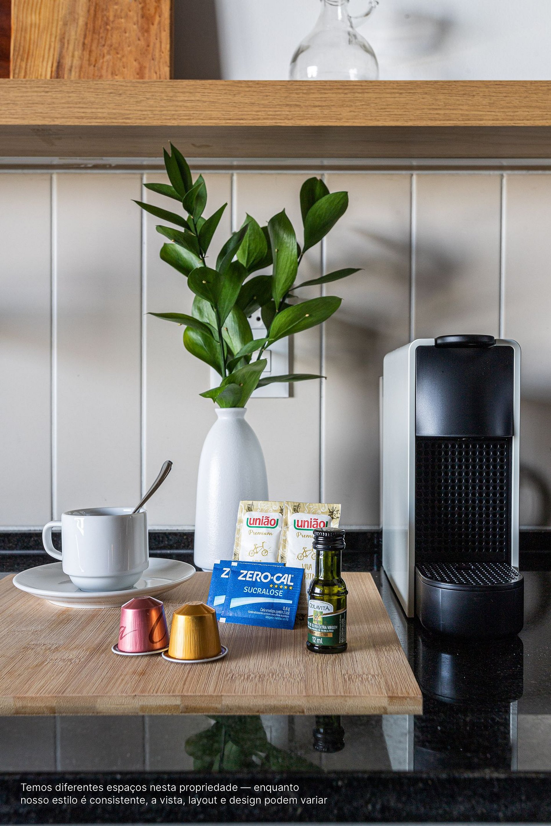 - A decoração e as amenidades dos apartamentos podem ter variações como cafeteira (pó ou cápsula), ferro de passar x steamer, fogão x cooktop (com ou sem forno).