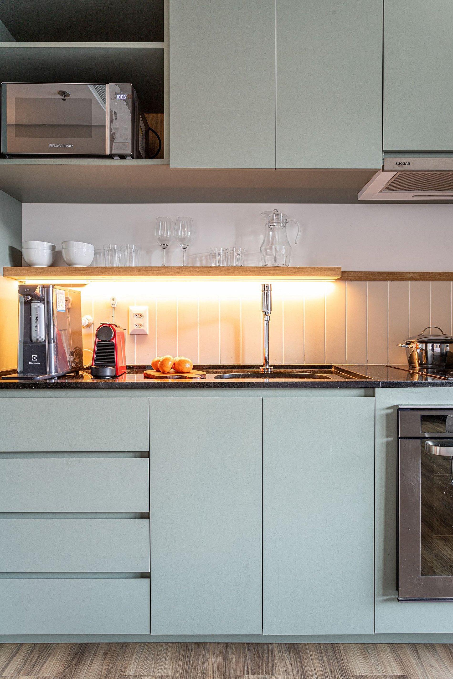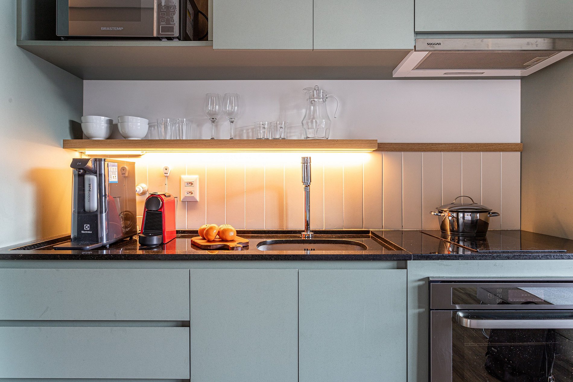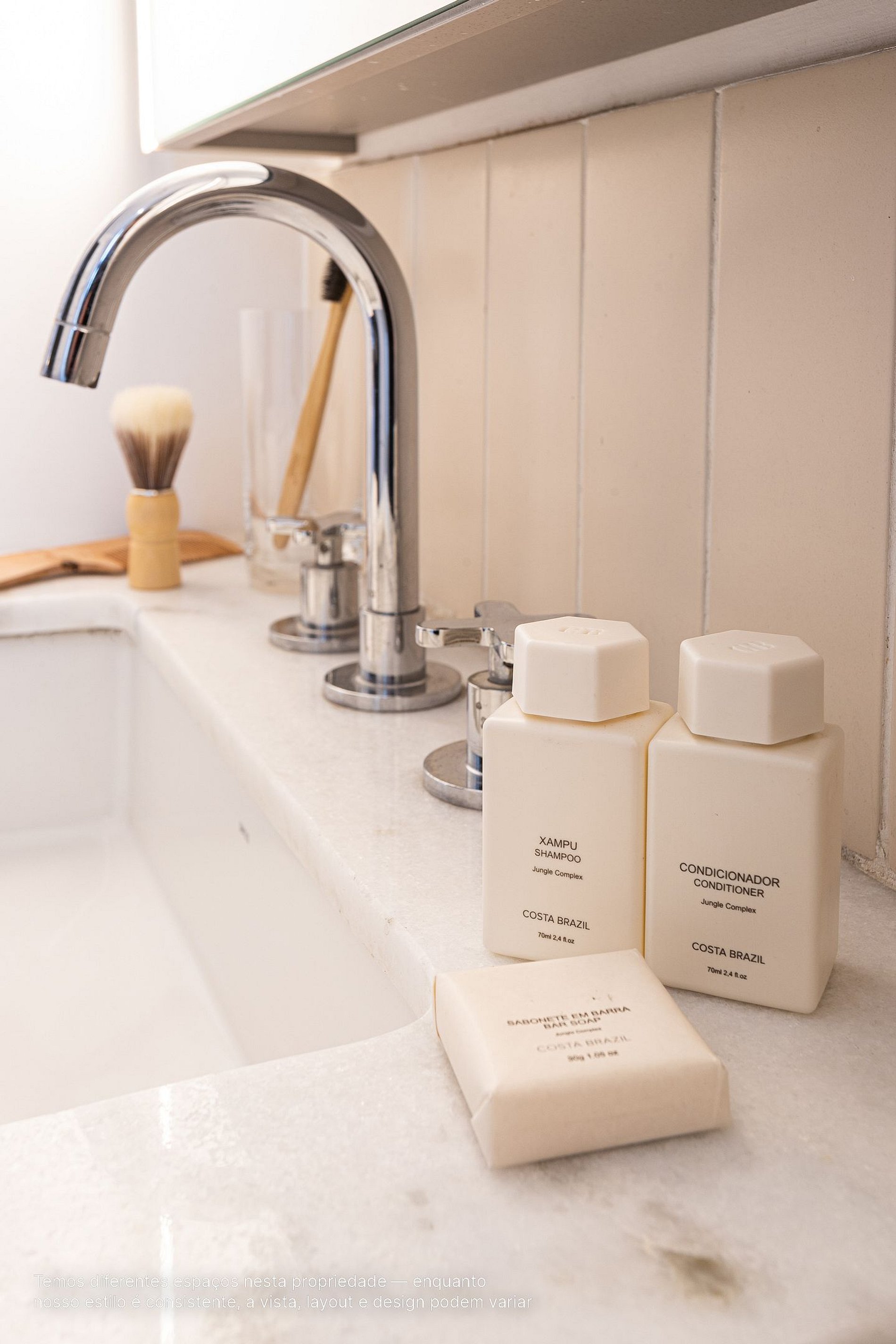 - A decoração e as amenidades dos apartamentos podem ter variações como cafeteira (pó ou cápsula), ferro de passar x steamer, fogão x cooktop (com ou sem forno).