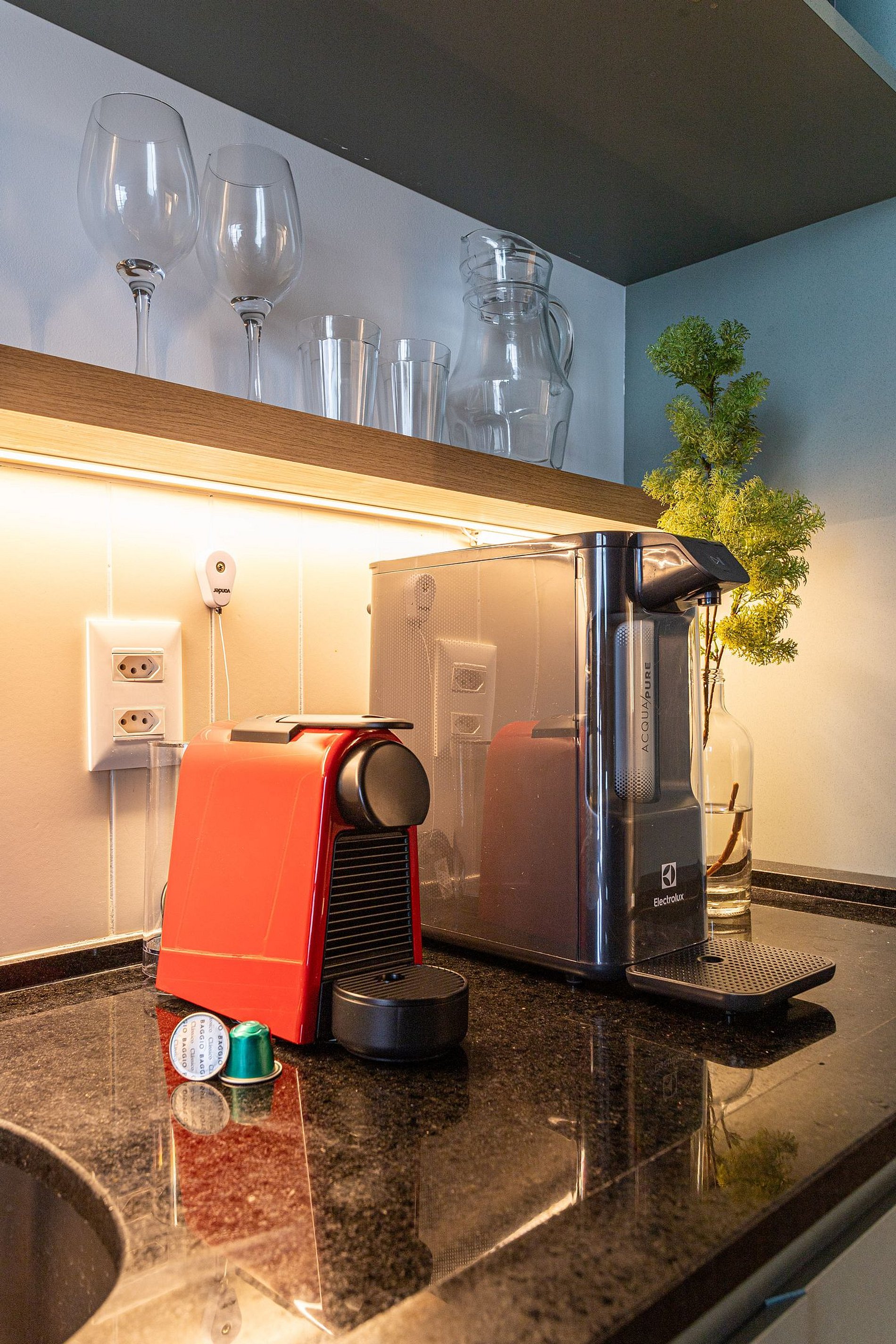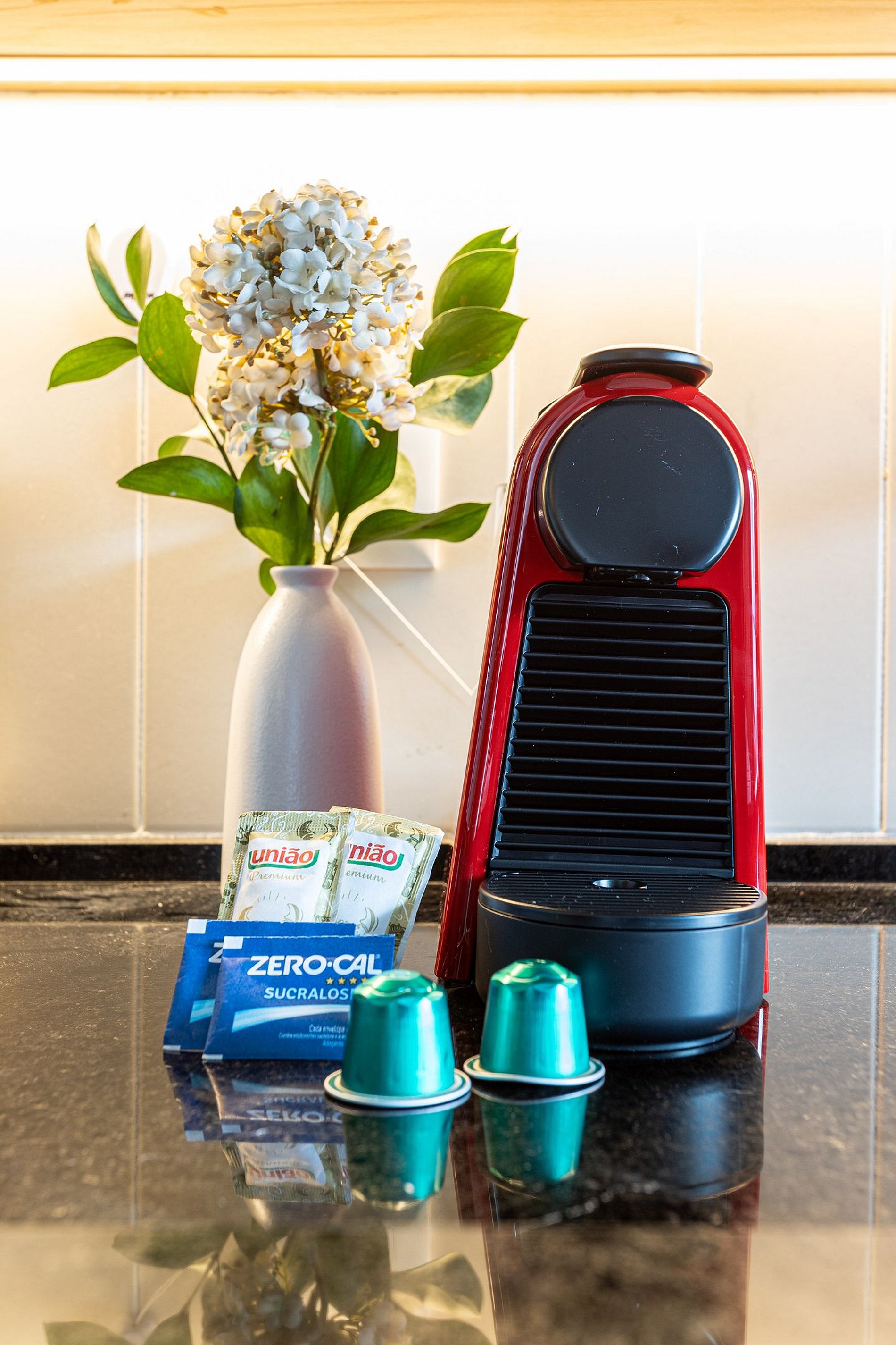 - A decoração e as amenidades dos apartamentos podem ter variações como cafeteira (pó ou cápsula), ferro de passar x steamer, fogão x cooktop (com ou sem forno).
