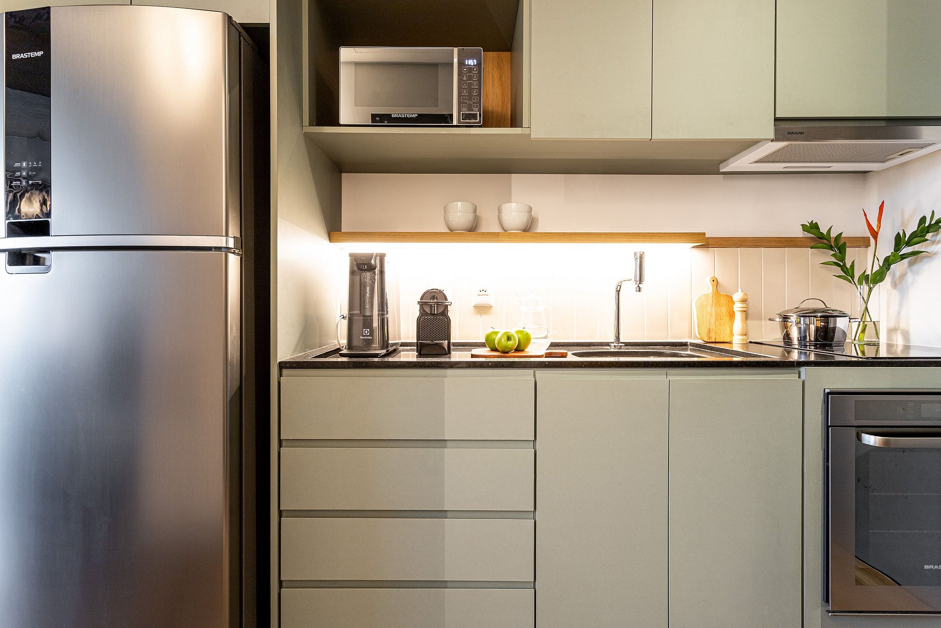 *A decoração e as amenidades dos apartamentos podem ter variações como cafeteira (pó x cápsula), ferro de passar x steamer, fogão x cooktop (com ou sem forno).