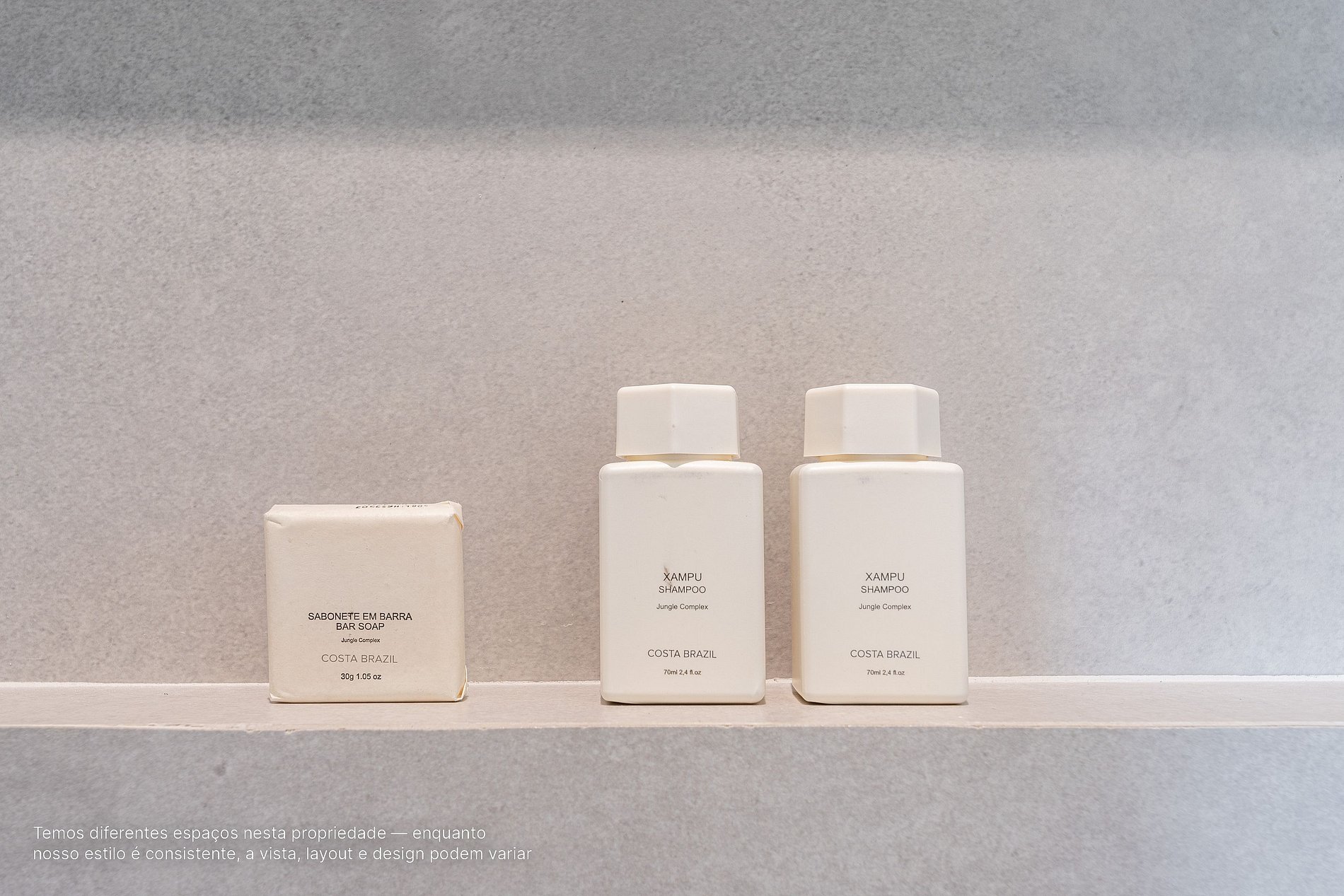 - Amenidades essenciais (cortesia na chegada, sem reposição durante a estadia).