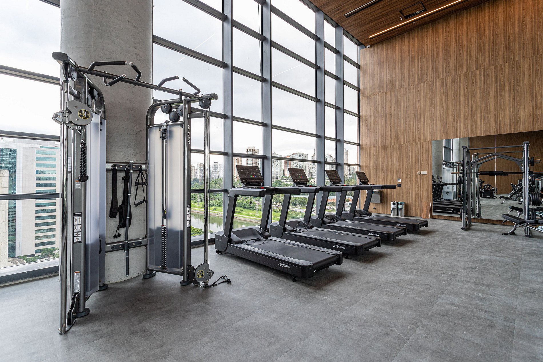 - Academia 24 horas (9. Andar, uso livre com facial cadastrada equipada com esteiras, bicicletas ergométricas, aparelho multi-exercício e halteres)