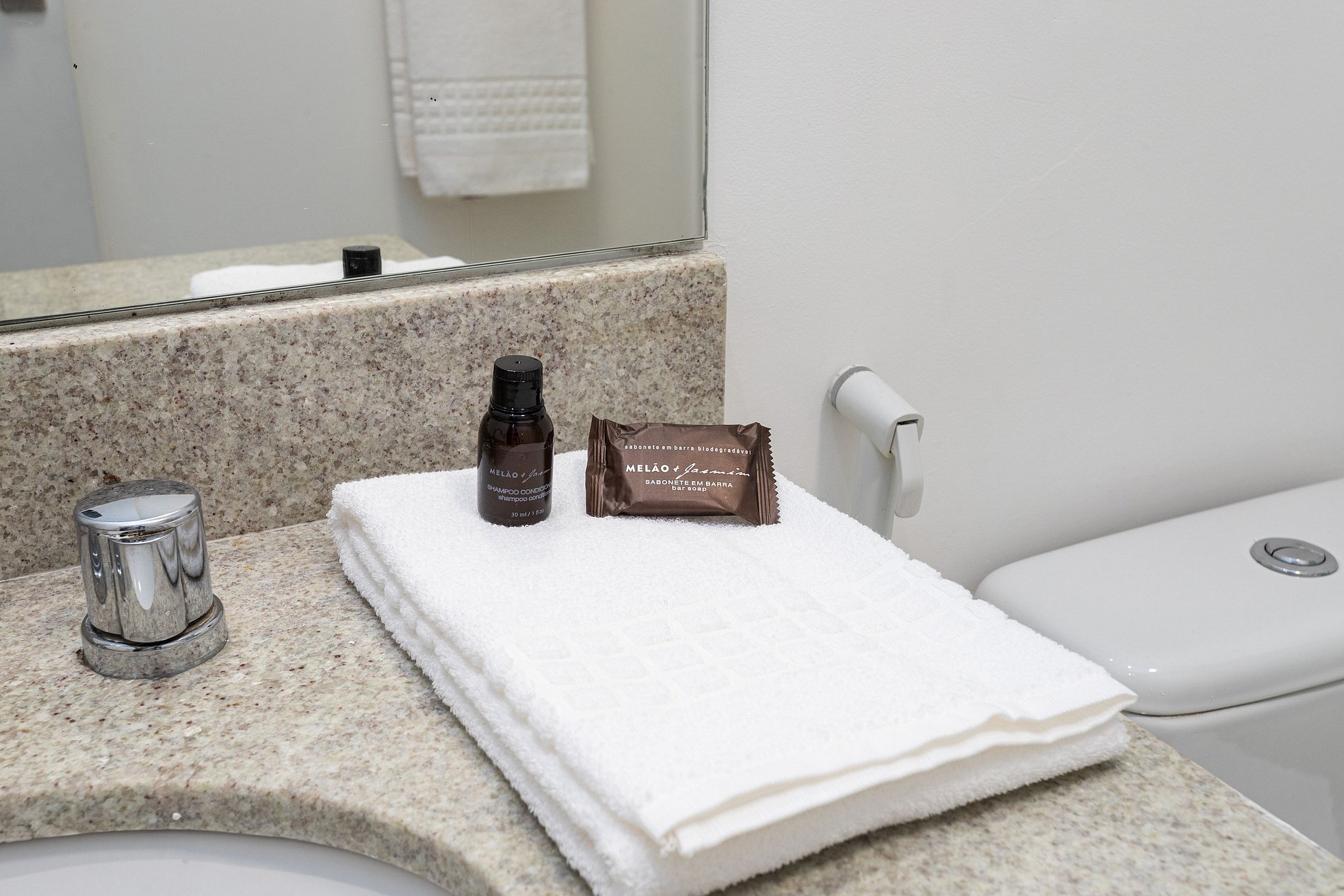 - Amenidades essenciais (cortesia na chegada, sem reposição durante a estadia)