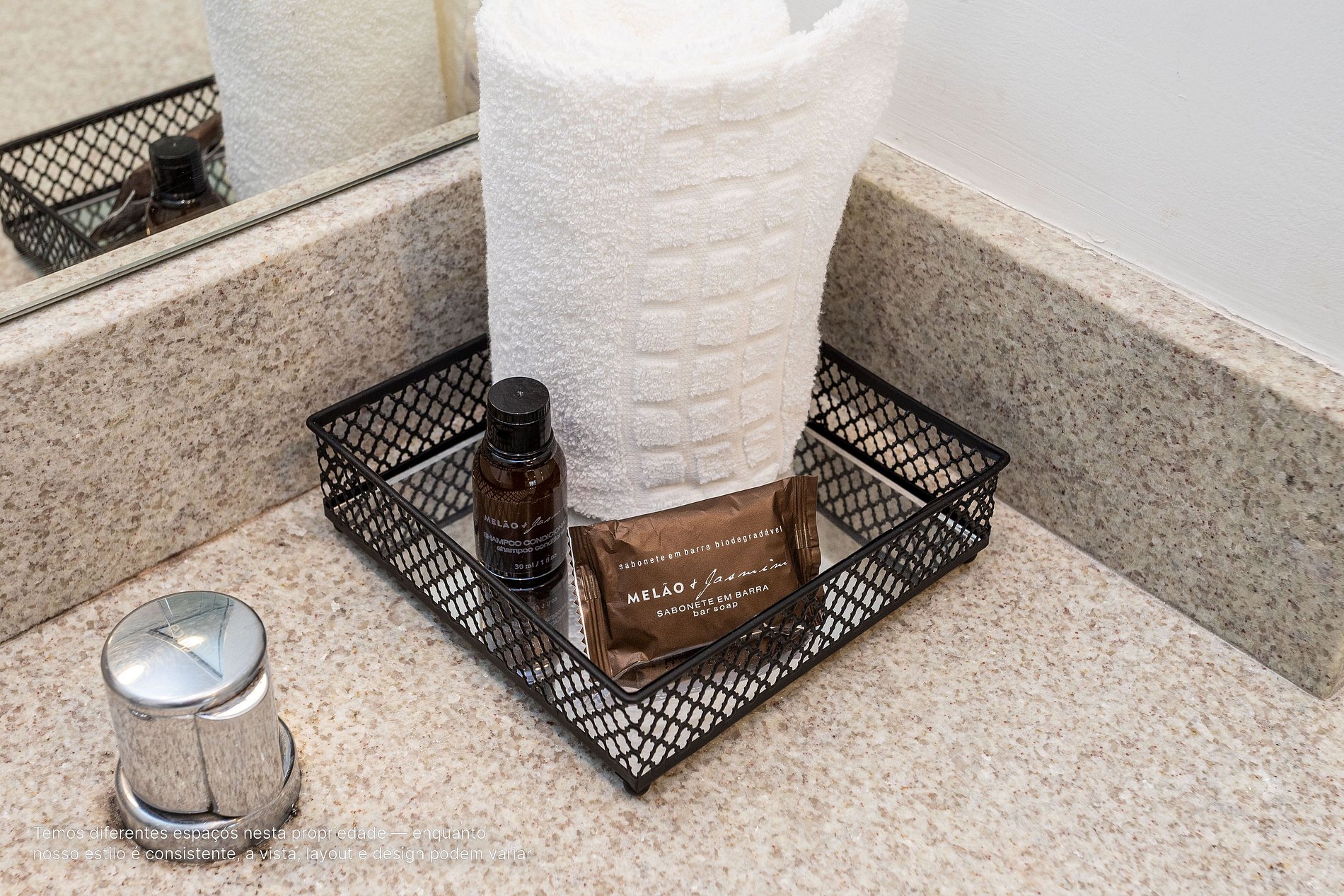 - Amenidades essenciais (cortesia na chegada, sem reposição durante a estadia)