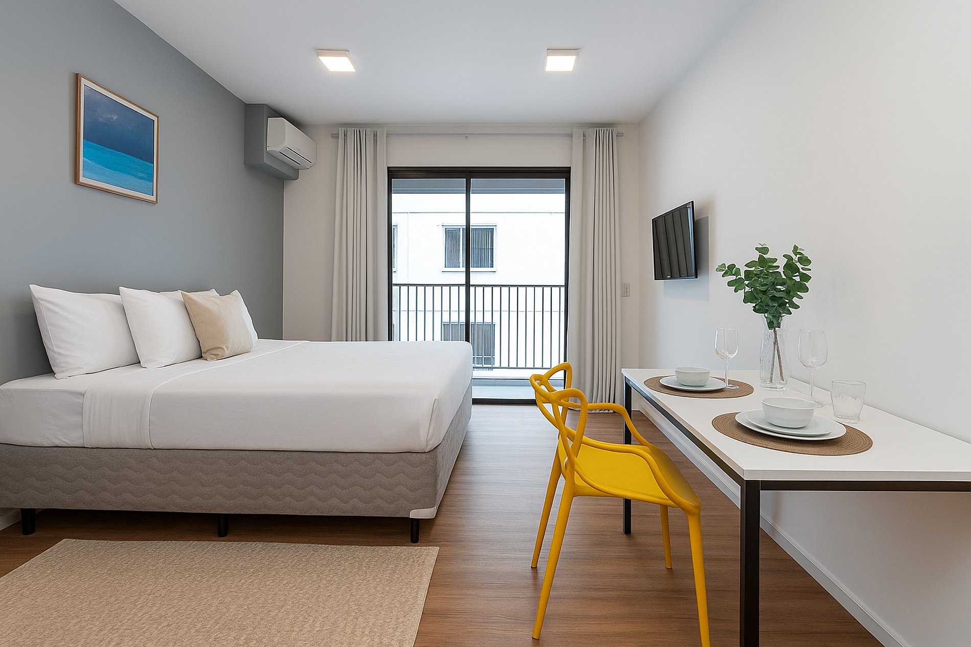 *A decoração e as amenidades dos apartamentos podem ter variações como cafeteira (pó x cápsula), ferro de passar x steamer, fogão x cooktop (com ou sem forno).