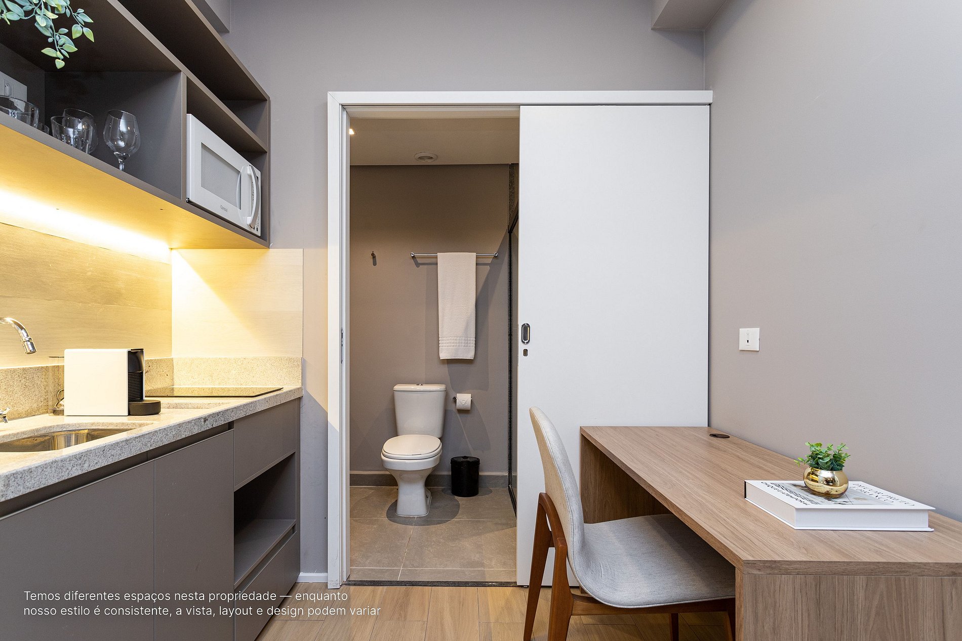 *A decoração e as amenidades dos apartamentos podem ter variações como cafeteira (pó x cápsula), ferro de passar x steamer, fogão x cooktop (com ou sem forno).