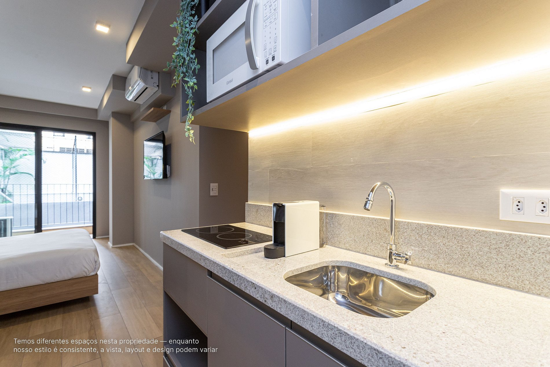 *A decoração e as amenidades dos apartamentos podem ter variações como cafeteira (pó x cápsula), ferro de passar x steamer, fogão x cooktop (com ou sem forno).
